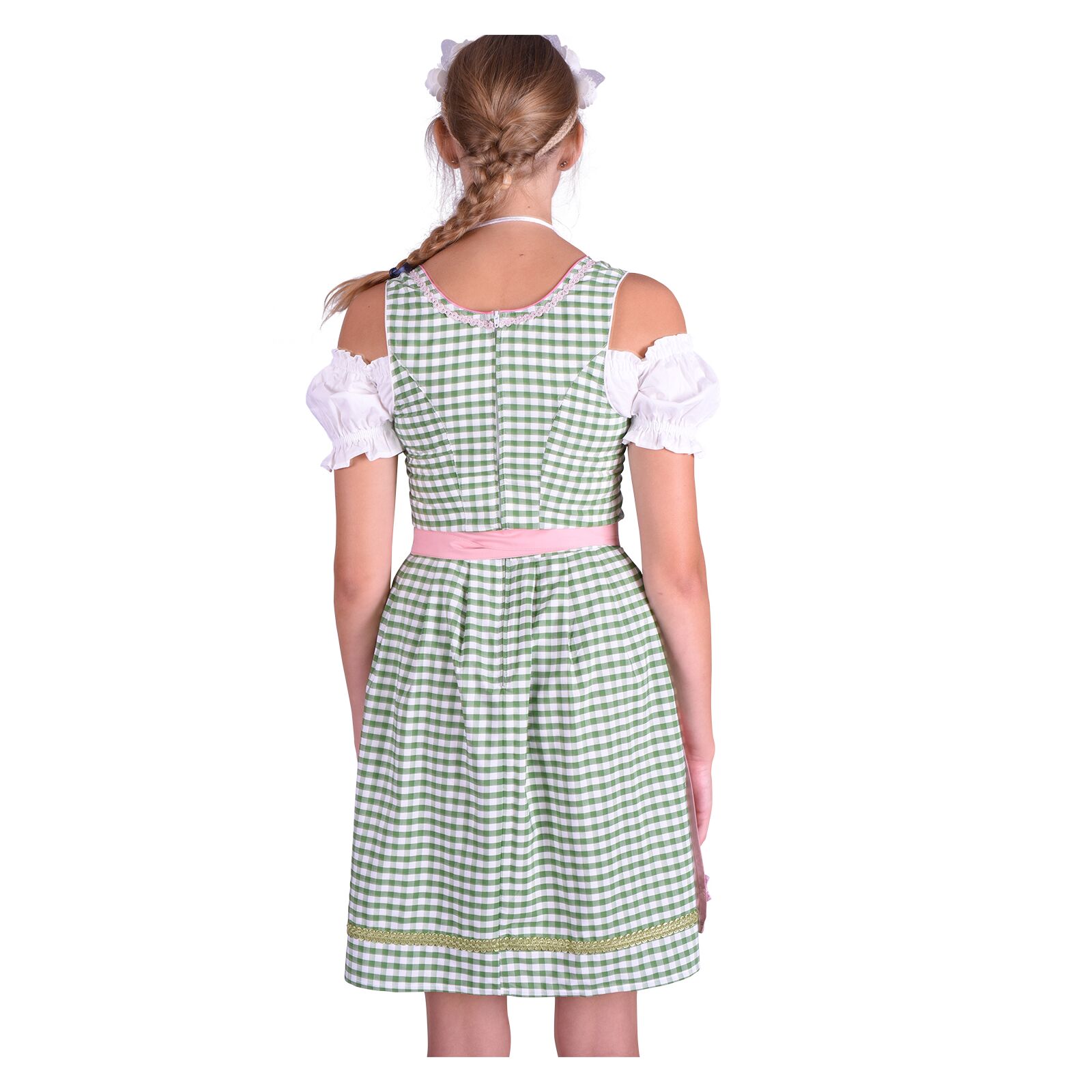 Dirndl Set Trachtenkleid Grün-Weiß Kariert - Komplettset Mit Bluse & Schürze