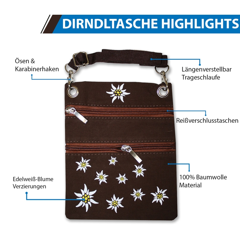 Die perfekte Tasche für dein Dirndl-Outfit! Die Trachtentasche Lissy von Alpenflüstern ist aus edlem Wildlederimitat gefertigt und mit silberfarbenen Ornamenten sowie funkelnden Strasssteinen verziert. Mit ca. 28x13x5,5 cm bietet sie genug Platz für Essentials. Der Henkel und der abnehmbare, verstellbare Schultergurt geben dir Flexibilität beim Tragen. Ob Oktoberfest, Trachtenball oder Hochzeit - diese Tasche rundet dein Outfit stilvoll ab und ist ein echter Hingucker. Hochwertige Verarbeitung und traditionelles Design made in Bayern!