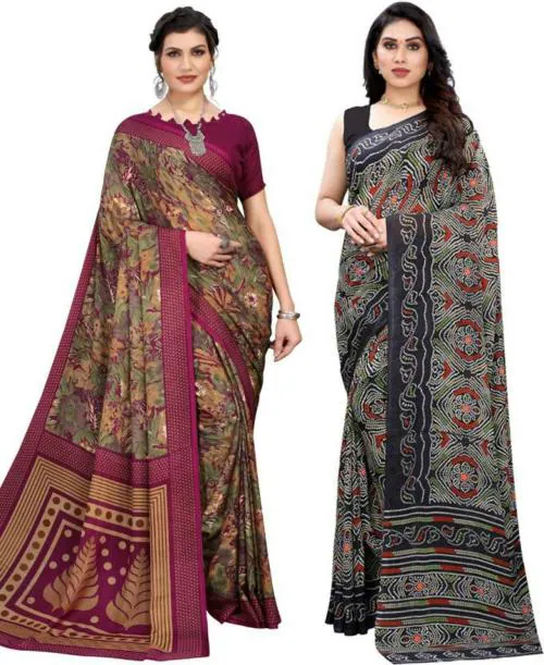 Yashika Damen Sari Aus Georgette - Traditionelles Kleid Mit Spitze Und Blusenstoff