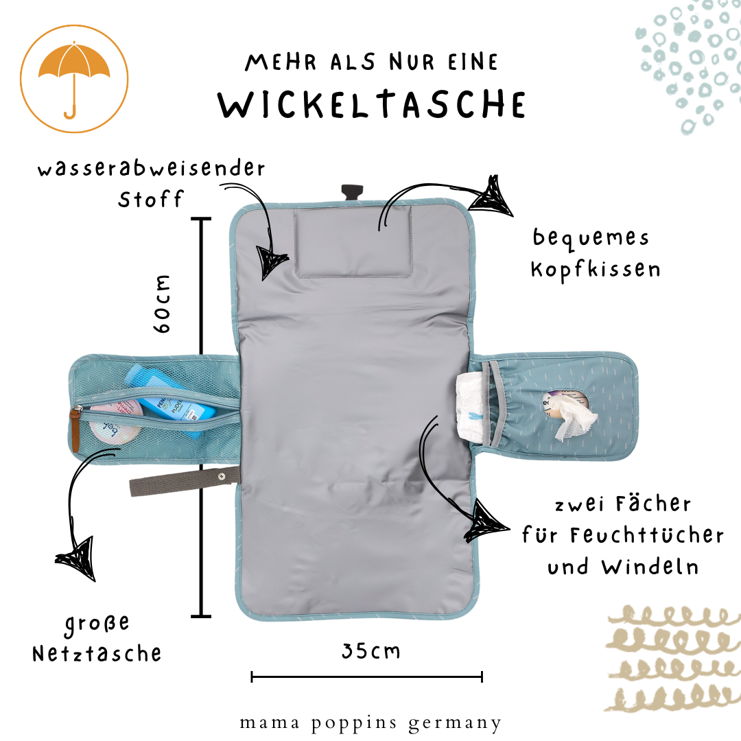 Wickeln war noch nie so praktisch! Diese tolle Wickelunterlage von Kikier ist dein bester Begleiter unterwegs. Mit mehreren Taschen für Feuchttücher, Fläschchen und Spielzeug - alles griffbereit. Das weiche Schwammkissen schützt Babys Kopf und macht's extra gemütlich. Aus robustem Oxford-Stoff und wasserdichtem Polyester - hält auch mal was aus. Zusammengefaltet mit praktischem Griff - super zum Aufhängen am Kinderwagen oder Tragen in der Hand. Maße 26,7 x 19,1 cm - passt in jede Wickeltasche. Sieht aus wie eine elegante Umhängetasche, ist innen aber eine komplette Wickelstation. Ob zu Hause, bei Oma oder unterwegs - damit wird jedes Wickeln zum Kinderspiel! Einfach auspacken und loslegen.