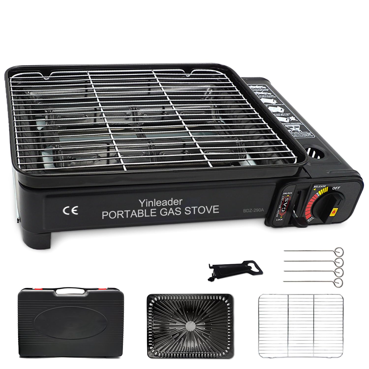 Tragbarer Camping Grill 41,5x28x11cm - Gas Grill Für Terrasse, Camping Und Grillpartys Mit Zubehör