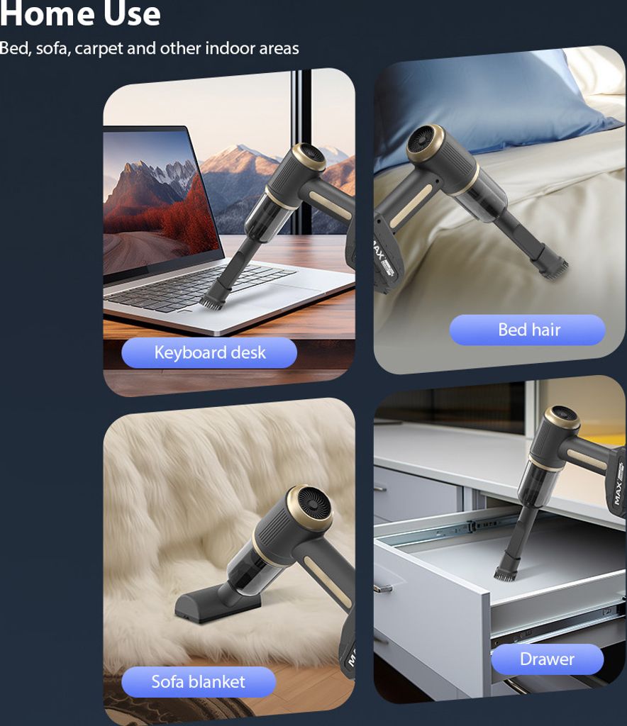 Endlich Ordnung in jeder Ecke! Dieser kabellose Mini-Staubsauger ist der perfekte Helfer für zwischendurch. Mit 6000 Pa Saugkraft - richtig stark für seine Größe! Akkubetrieben - völlig frei in der Bewegung. Inklusive Flach- und Bürstendüse - für alle Oberflächen geeignet. Digitaler Akku-Anzeige - du siehst immer, wie viel Power noch da ist. Abnehmbarer Behälter und Filter - super easy zu reinigen. Perfekt für Auto, Tastatur, Regale oder Sofaritzen. Leicht und handlich - liegt gut in der Hand. Aufladbar über USB - praktisch für unterwegs. Macht das Saubermachen so viel einfacher! Für alle, die keine Lust auf lästiges Kabelziehen haben. Qualität, die sich im täglichen Einsatz bewährt. Ein kleiner Helfer, der große Wirkung hat!