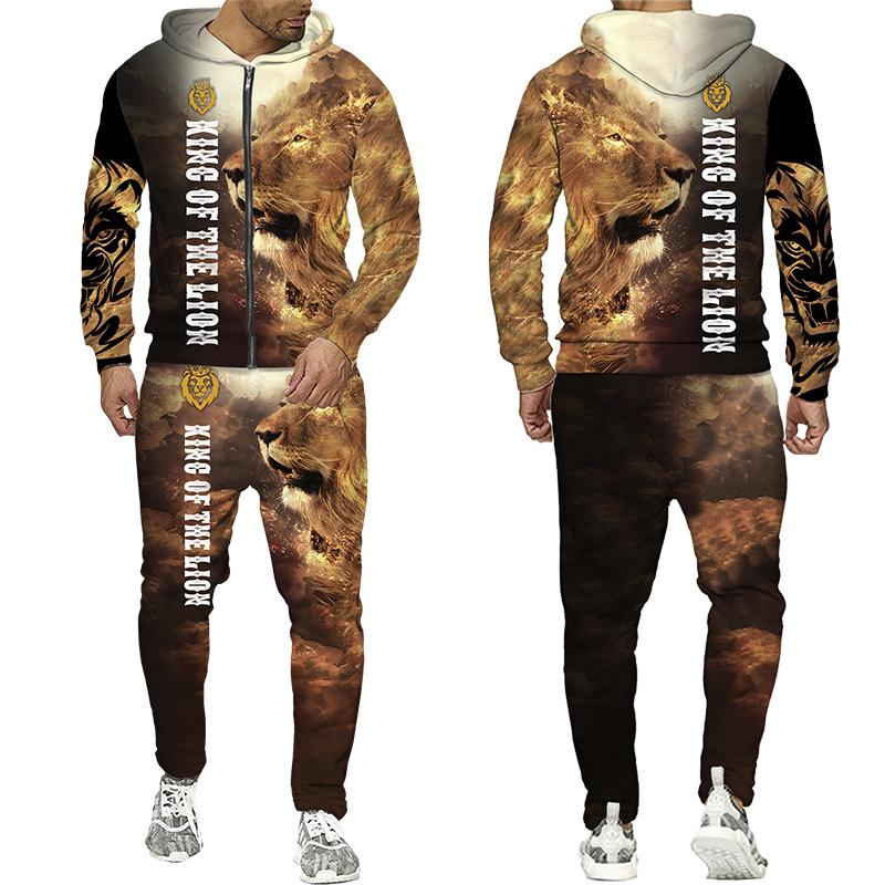 Hiegi Herren Trainingsanzug 2-teilig - 3D Löwe Tiger Wolf Design Jogginganzug Aus Polyester