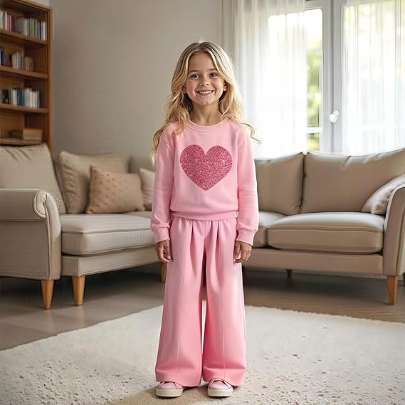 So süß - dieses 2-teilige Set für kleine Mädchen! Das Langarm-Sweatshirt mit niedlichem Herz-Print und die passende Jogginghose sind perfekt für Schule, Freizeit oder gemütliche Tage zu Hause. Aus weichem, atmungsaktivem Stoff, der die Haut nicht reizt. Der elastische Bund an der Hose sorgt für maximalen Komfort. Verfügbar in Größen für 7-12 Jahre. Einfach in der Maschine waschbar und super pflegeleicht. Ob für den Kindergarten, Spielplatz oder gemütliche Familientage - damit ist deine Kleine immer stylisch und bequem unterwegs!