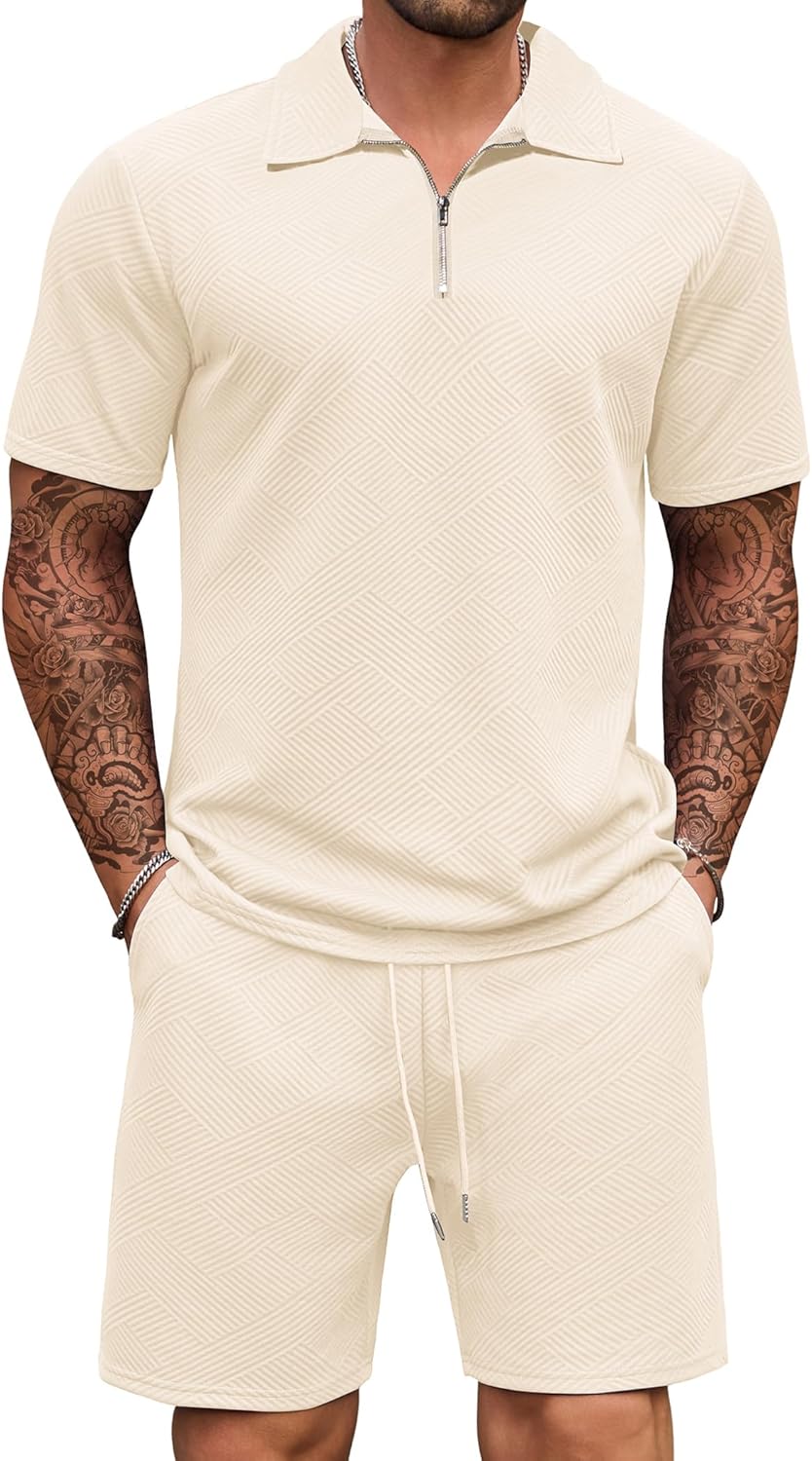 COOFANDY Herren Trainingsanzug 2-teilig - Viertelreißverschluss Sweatsuit