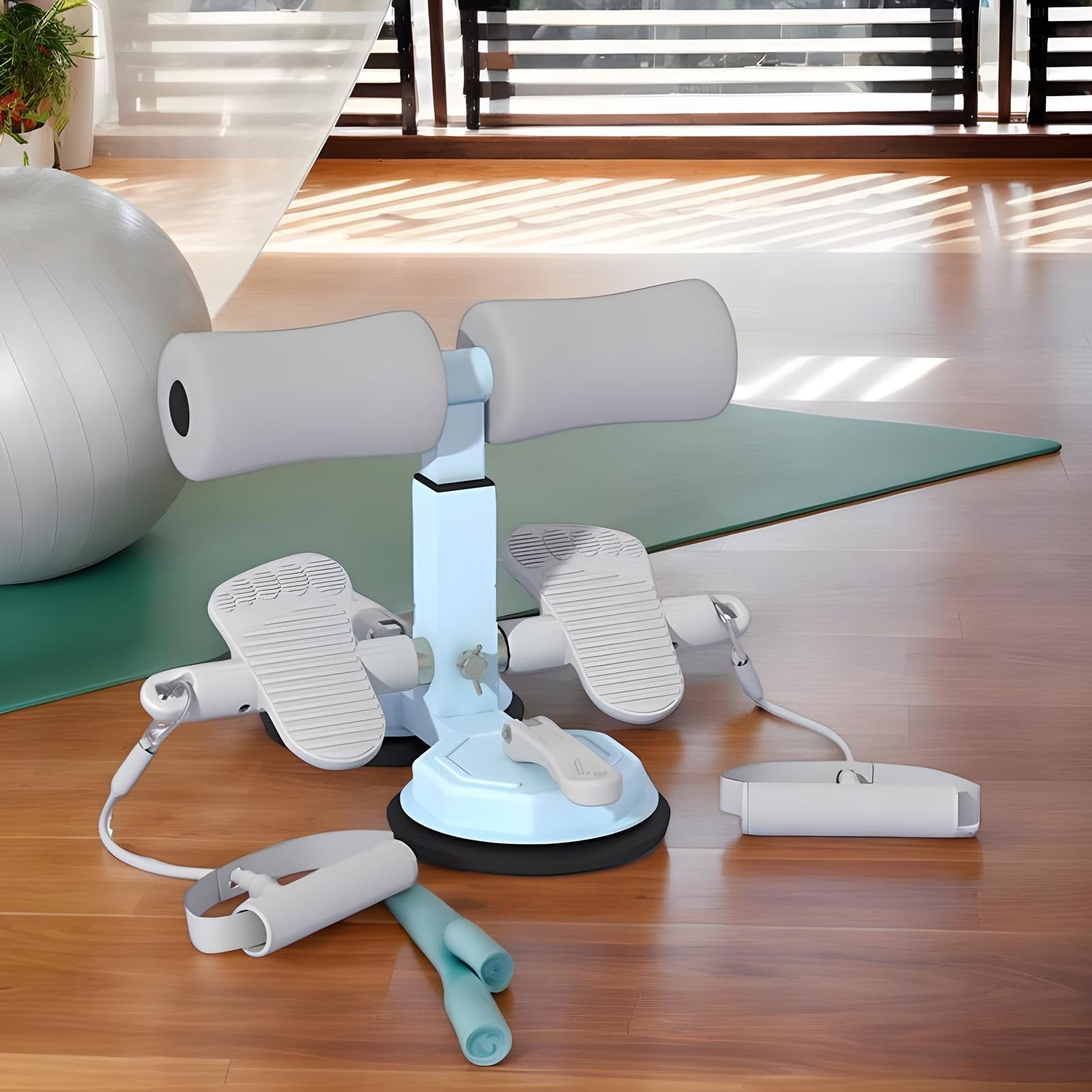 Geniale Fitness-Lösung für zu Hause! Dieser Sitz-Fußständer verwandelt dein Wohnzimmer im Handumdrehen in ein Mini-Studio. Mit doppelten Saugnäpfen haftet er bombenfest auf glatten Böden - kein Verrutschen und keine Bodenbeschädigung. Die Höhe lässt sich stufenlos verstellen, perfekt für jedes Fitness-Level. Die ergonomischen Schaumstoff-Griffe liegen super in der Hand und schonen deine Gelenke. Mit dem inkludierten Zugseil kannst du das Training noch intensiver gestalten. Ideal für Bauchmuskel-Übungen, aber auch für viele andere Workouts. Einfach aufstellen, festdrücken und loslegen - ohne komplizierte Montage. Dein persönlicher Trainer für mehr Kraft und Balance!