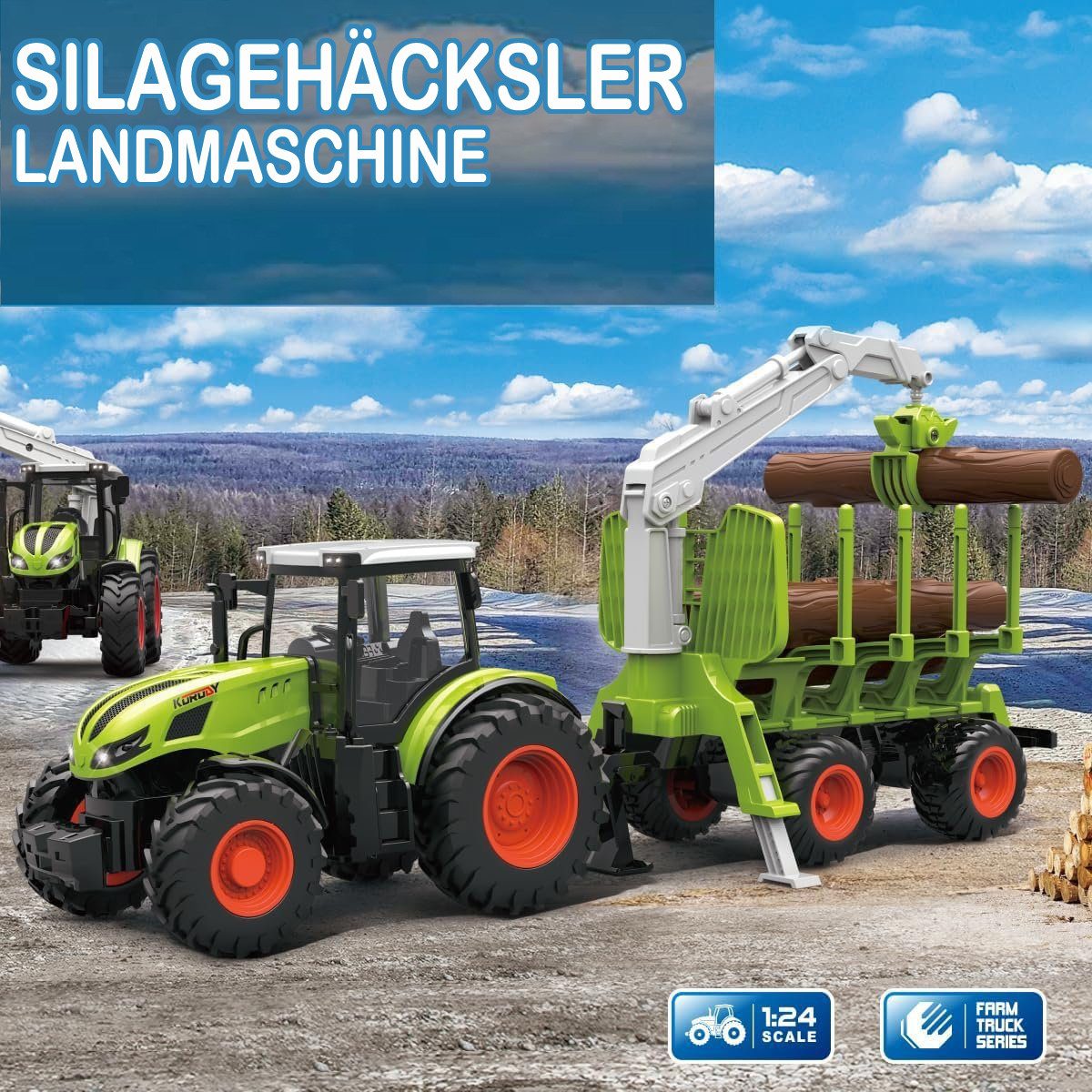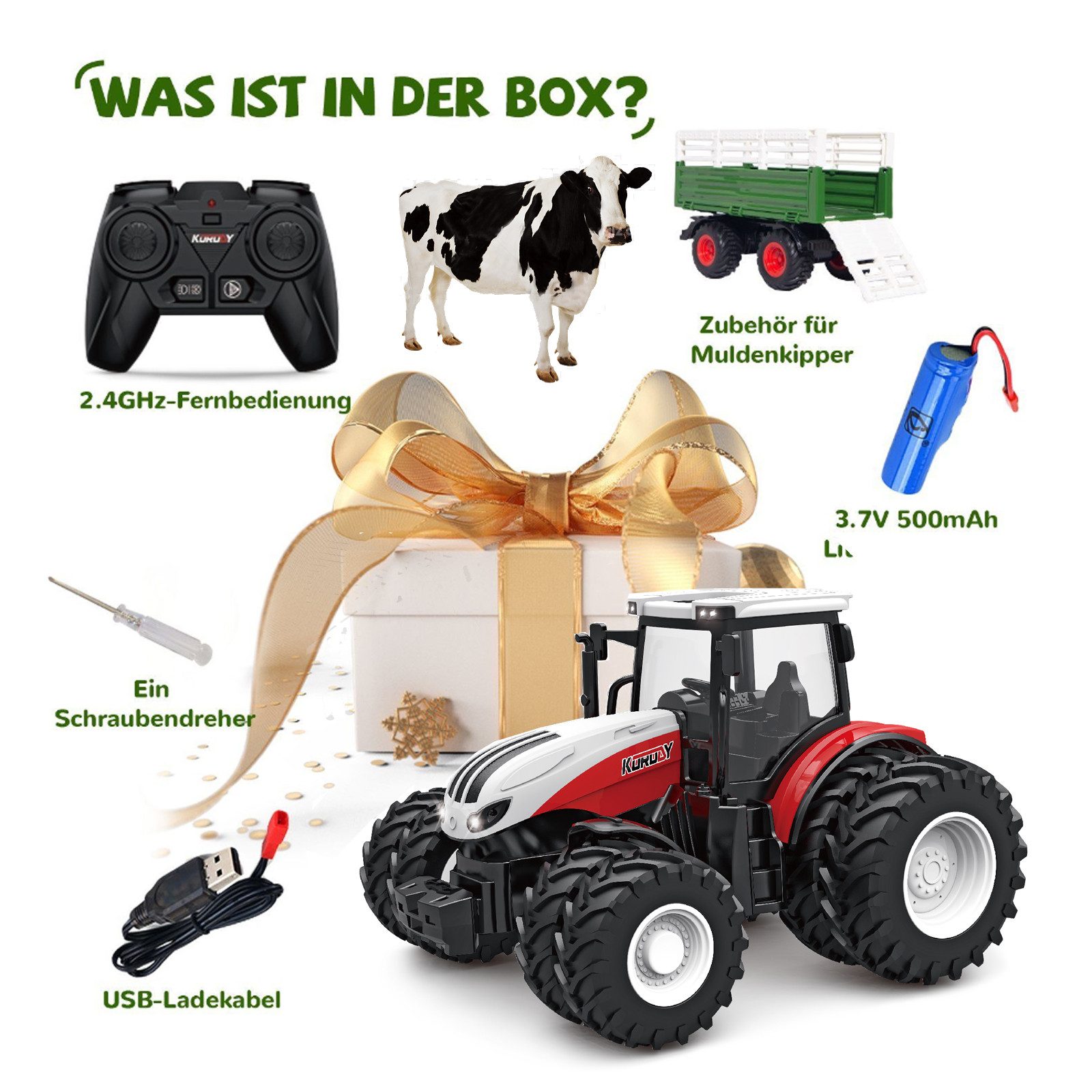 FRUSE RC Traktor Mit Anhänger - Ferngesteuerter Bauernhof Traktor 2,4 GHz Mit Tieren & Zubehör