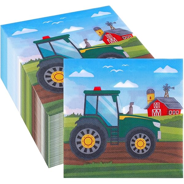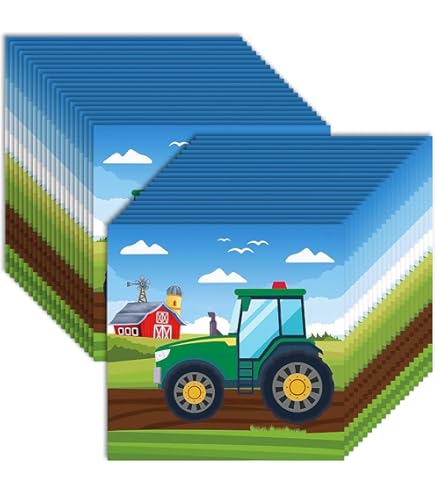 40 Stück Traktor Servietten Kindergeburtstag - 33x33cm Buntes Partyzubehör