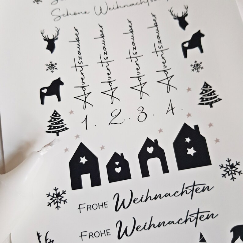 Die Aufkleber sind aus PVC-Folie, 14,8x21cm groß und die Farbe hält lange. Perfekt für Weihnachtsdekoration, Geburtstagsgeschenke, Fotoalben oder Möbel. Auf Glas, Holz, Keramik oder Gips halten sie super.