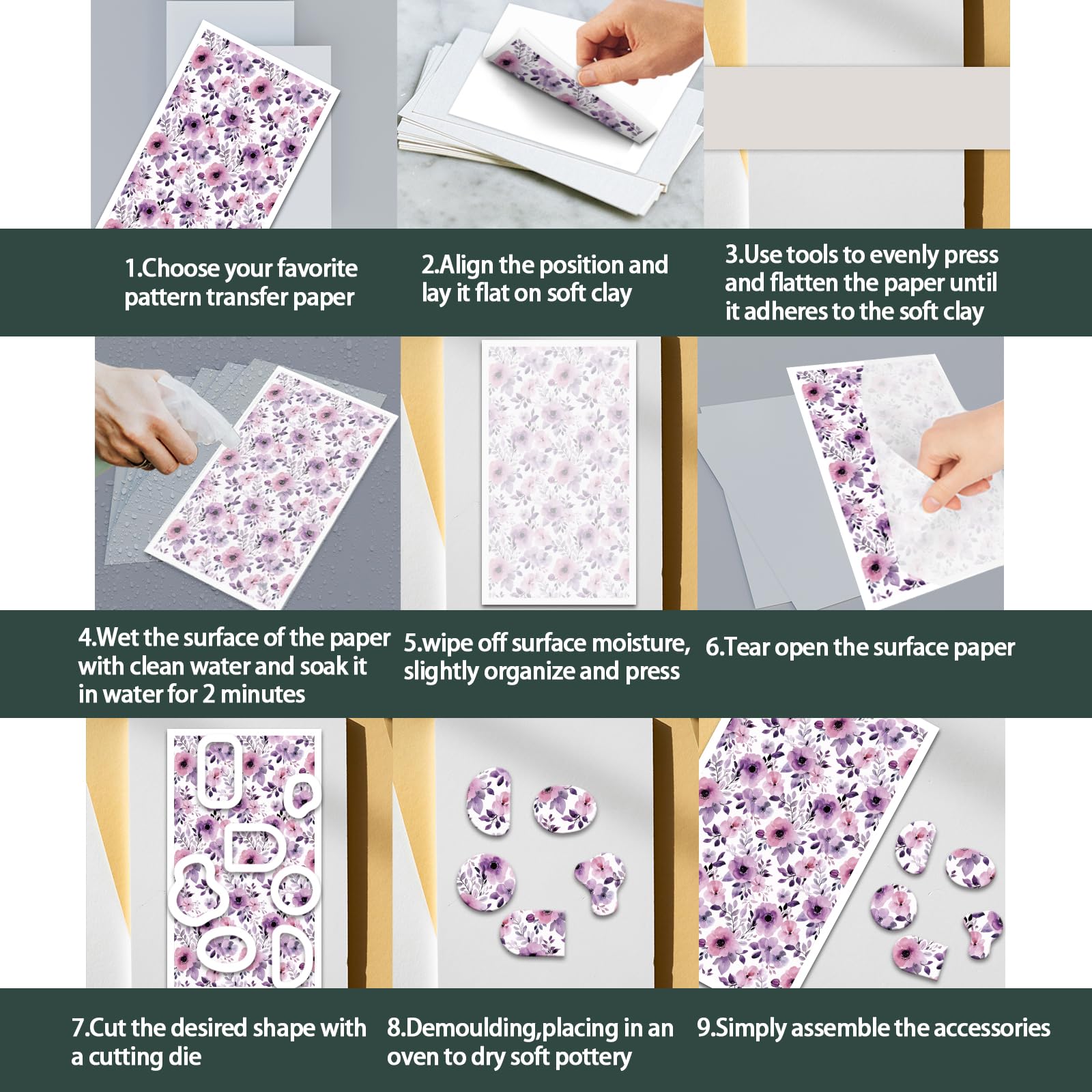 OLYCRAFT Blumen Transferpapier Für Polymer Clay - 24 Stück Mit 4 Designs Für Schmuckherstellung