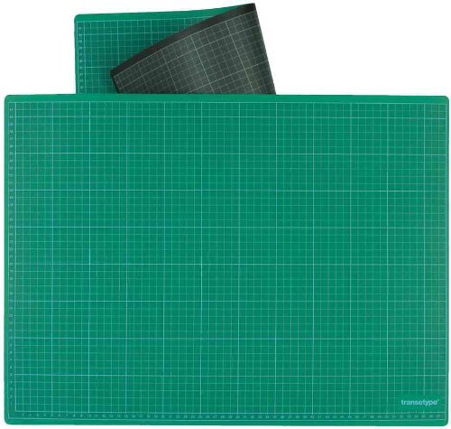 Transotype Schneidematte 45x30 Cm - Selbstheilende Unterlage Grün-schwarz Mit Feinem Raster