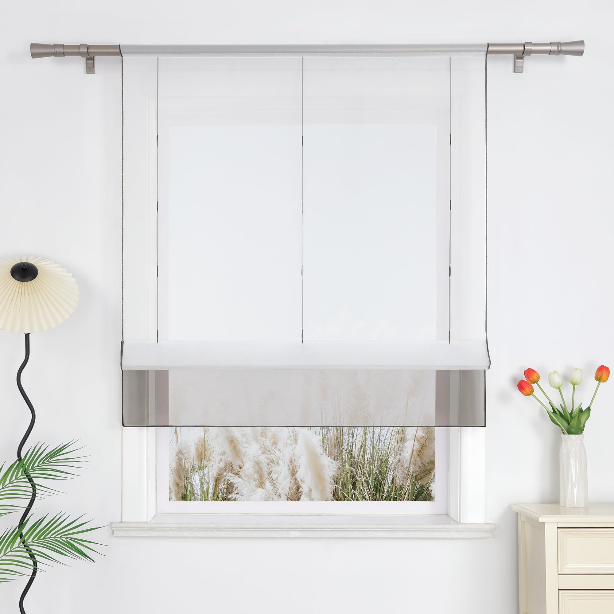 Yujiao Mao Scheibengardine Voile Transparent - Bestickte Gardine 45x96cm Mit Lochleiste