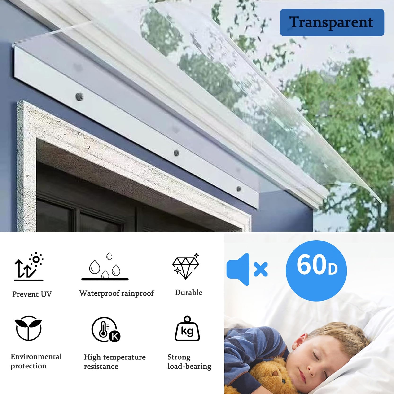 Polycarbonat Vordach 50x120cm - Transparente Haustür Überdachung Regenschutz