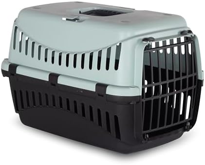 Diese stabile Transportbox von MP Bergamo ist perfekt für dein Haustier! In Dark Green mit praktischer Kunststofftür. Bis zu 5 kg Belastung möglich. Mit speziellen Kerben für den Sicherheitsgurt im Auto - so reist dein Tier sicher mit. Die große Fronttür und seitlichen Luftauslässe sorgen für stressfreies Reisen. Einfach die seitlichen Sicherheitsclips schließen und die 4 Haken verriegeln - schon ist dein Liebling sicher verstaut. Ideal für Auto, Bus oder Bahn. Dein Tier reist komfortabel und sicher - damit ihr beide entspannt ankommt!