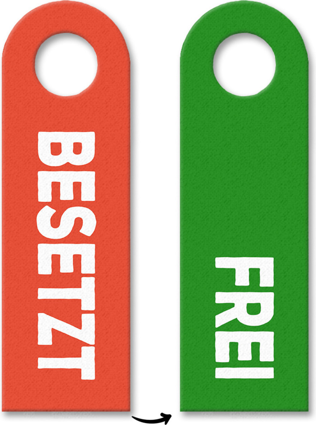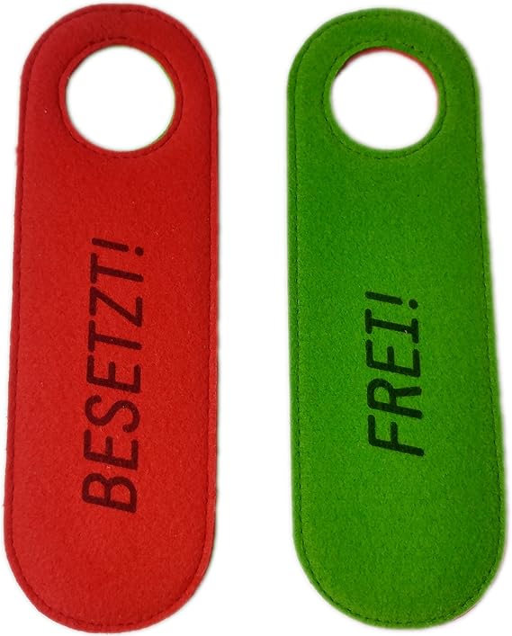 Endlich Klarheit auf der Toilette! Dieser praktische Türhänger zeigt sofort, ob das Klo besetzt oder frei ist. Einfach umdrehen - rot bedeutet 'Besetzt', grün bedeutet 'Frei'. Aus weichem Filz gefertigt, ca. 8x27cm groß, passt er an jede Toilettentür. Der hochwertige Druck sorgt für langanhaltende Farbbrillanz, die robuste Verarbeitung hält jahrelang. Kein mehr Raterei oder unangenehmes Klopfen - jeder sieht sofort, ob die Toilette belegt ist. Perfekt für Zuhause, Büro, Praxis oder Restaurant. Einfach über die Türklinke hängen und schon funktioniert's. Das clevere Design sieht nicht nur gut aus, sondern löst ein alltägliches Problem auf elegante Weise. Mach dein Badezimmer etwas organisierter mit diesem nützlichen Helfer!