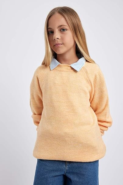 DeFacto Mädchen Pullover - Trendige Strickpullis Regular Fit Crew Neck