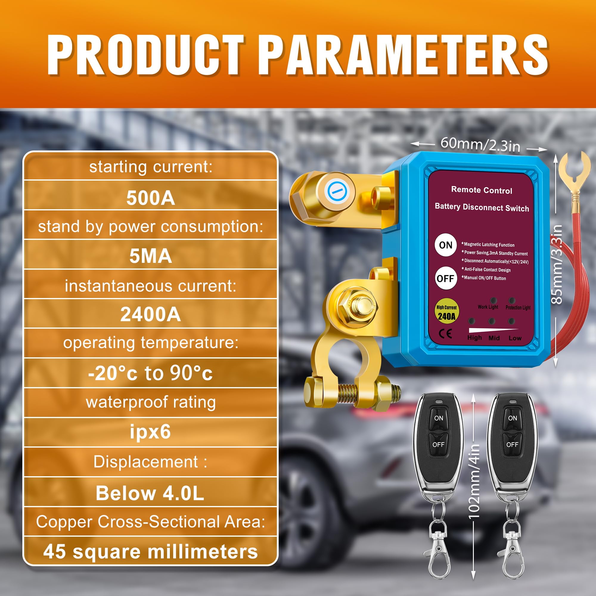 Schütze dein Fahrzeug vor Diebstahl und Batterieentladung! Dieser clevere Trennschalter trennt die Batterie per Funkfernbedienung - einfach Knopf drücken und das Auto ist sicher abgeschaltet. Bei Spannung unter 11,8V schaltet er automatisch ab und schützt so vor Tiefentladung. Nennstrom 240A, für die meisten 12V Fahrzeuge geeignet. Einfache Installation am Minuspol, keine Spezialwerkzeuge nötig. Perfekt für Auto, Wohnmobil, Boot, LKW und ATV. Mit Isoliergehäuse und Temperaturbeständigkeit von -22°C bis 90°C. Mehr Sicherheit und längere Batterielebensdauer - smarte Lösung für jeden Fahrzeugbesitzer!