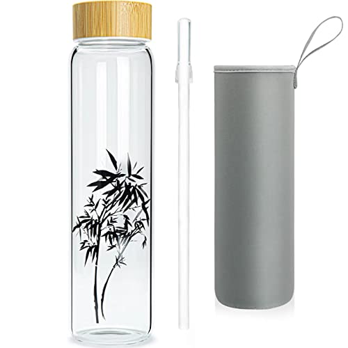 Joyan Glas-Trinkflasche 1 Liter Borosilikatglas - Tragbar Mit 2 Trinkoptionen