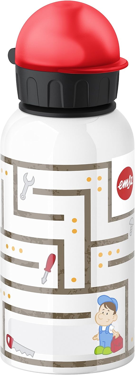 Diese Emsa Teens Trinkflasche mit coolem Schnurrbart-Design ist der Hit für Schule, Sport und Unterwegs! Mit 600 ml Fassungsvermögen ist sie der perfekte Begleiter für den ganzen Tag. Aus hochwertigem Aluminium ist sie super leicht aber trotzdem robust. Der Sicherheitsverschluss ist genial durchdacht: Rote Pfeile zeigen die Drehrichtung, und wenn er offen ist, kann er nicht versehentlich geschlossen werden - total sicher also! Die Flasche ist 100% dicht und fruchtsäurebeständig, also perfekt für Wasser, Säfte oder Schorlen. Noch hygienischer: Mundstück zerlegbar und spülmaschinengeeignet, dazu BPA-frei. Mit integriertem Namensfeld verlierst du sie nie aus den Augen. Dein Kind wird diese coole Flasche lieben!