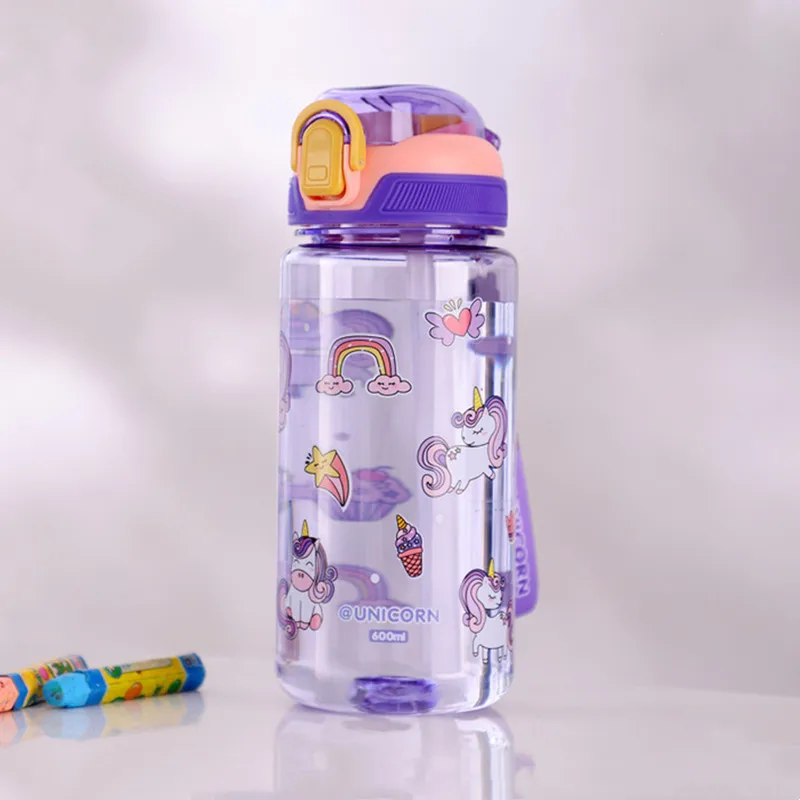Kinder Trinkflasche 600ml Mit Strohhalm - Bruchsicher & Auslaufsicher