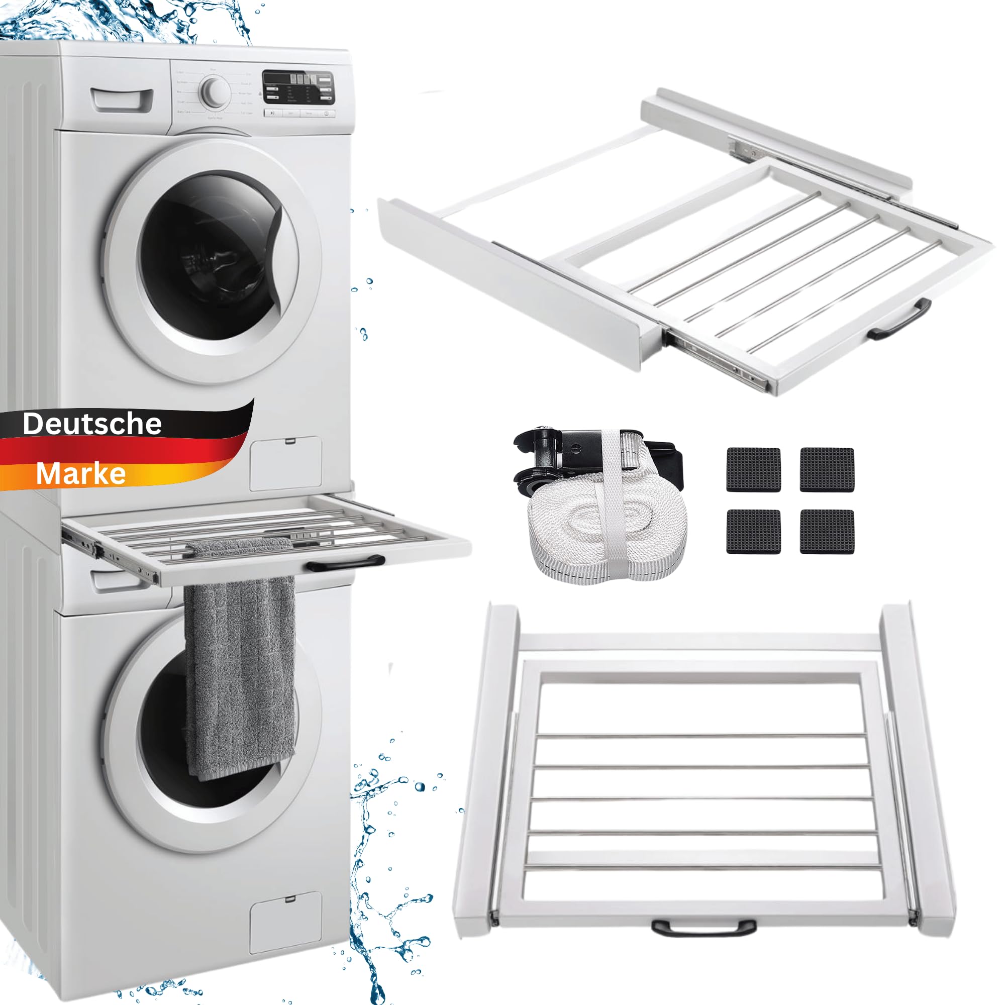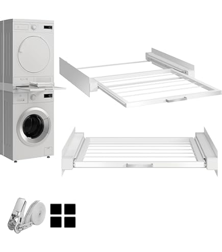 Platzprobleme im Waschkeller? Dieser universale Zwischenbaurahmen von BOPEUY ist die Lösung! Jetzt kannst du deine Waschmaschine und deinen Trockner sicher übereinander stapeln und so wertvollen Platz sparen.
