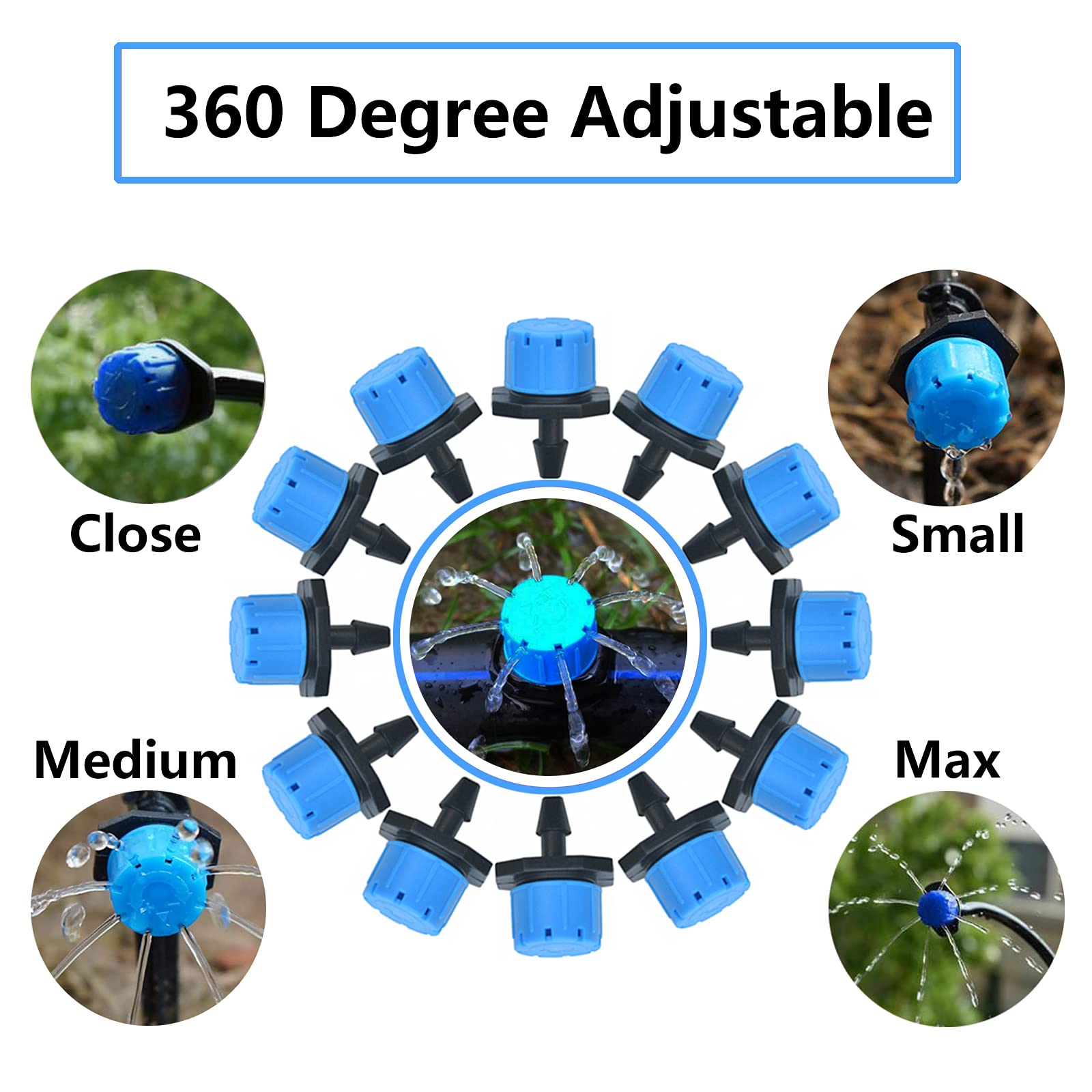 Perfekte Bewässerung für deinen Garten! Diese 50 blauen Tropfer mit 360-Grad-Sprühkopf und 8 Löchern sorgen für eine gleichmäßige Wasserverteilung. Einfach an 4/7mm Schläuche anschließen - Tipp: Schlauch vorher in warmem Wasser weich machen für einfachere Montage. Der Durchfluss ist von 0-70 l/h einstellbar, der Sprühdurchmesser beträgt bis zu 0,5m. Bei einem Arbeitsdruck von 2-4kg arbeiten die Tropfer optimal. Aus robustem PP-Material gebaut, brechen sie nicht so leicht. Spart bis zu 70% Wasser im Vergleich zur herkömmlichen Bewässerung! Ideal für Blumenbeete, Gemüsegarten, Topfpflanzen oder Landschaftsbau. Die Pflanzen bekommen genau die richtige Menge Wasser direkt an den Wurzeln - kein Verschwenden mehr! Einfach zu installieren und super effizient. Dein Garten wird es dir danken!