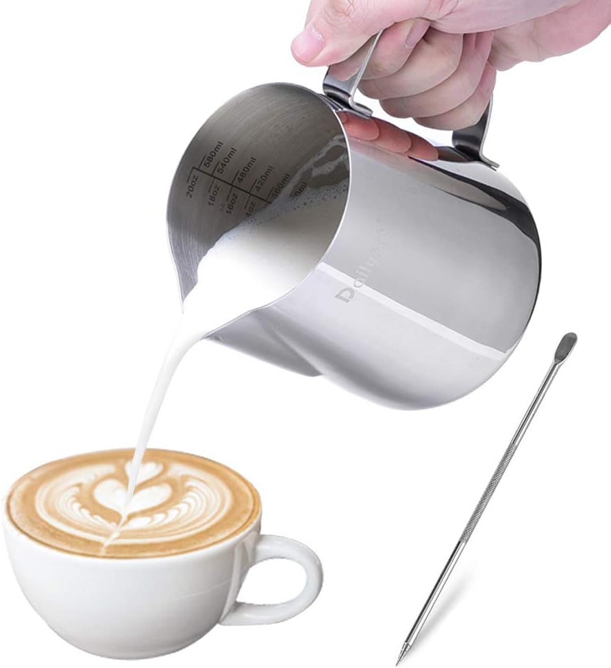 Perfekter Milchschaum für deine Kaffee-Kreationen! Dieses Edelstahl-Milchkännchen von Hominas ist der Traum jedes Baristas - ob Profi oder Heim-Barista. Mit 350ml Fassungsvermögen ideal für 1-2 Cappuccinos oder Lattes. Die tropffreie Tülle ermöglicht präzises Gießen für atemberaubende Latte Art-Muster. Der ergonomische Griff liegt perfekt in der Hand, auch bei langen Arbeitseinsätzen. Der mitgelieferte Deckel verhindert Überschwappen und hält die Temperatur. Aus hochwertigem, spülmaschinenfestem Edelstahl - rostfrei und extrem langlebig. Nicht nur für Milchschaum geeignet, sondern auch ideal für Sahne, Smoothies oder Saucen. Mach deine Küche zur Café-Bar und überrasche Gäste mit professionellen Kaffee-Kreationen!