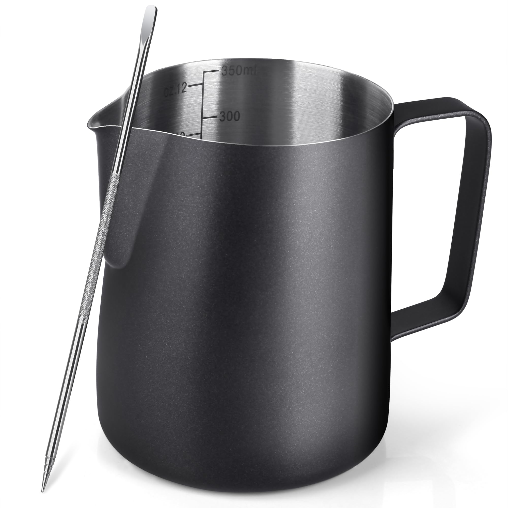 Hominas Milchkännchen 350ml Edelstahl | Mit Deckel & Tropffreier Tülle | Perfekt Für Latte Art & Barista