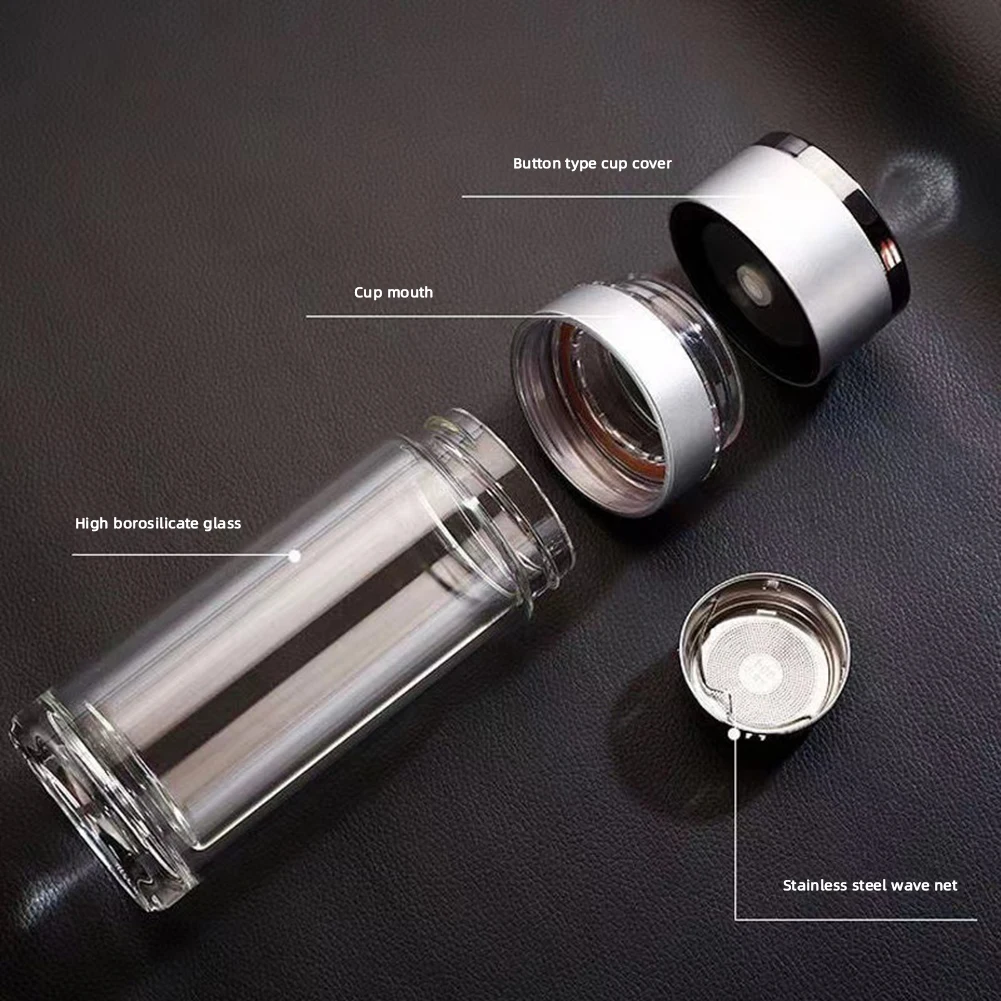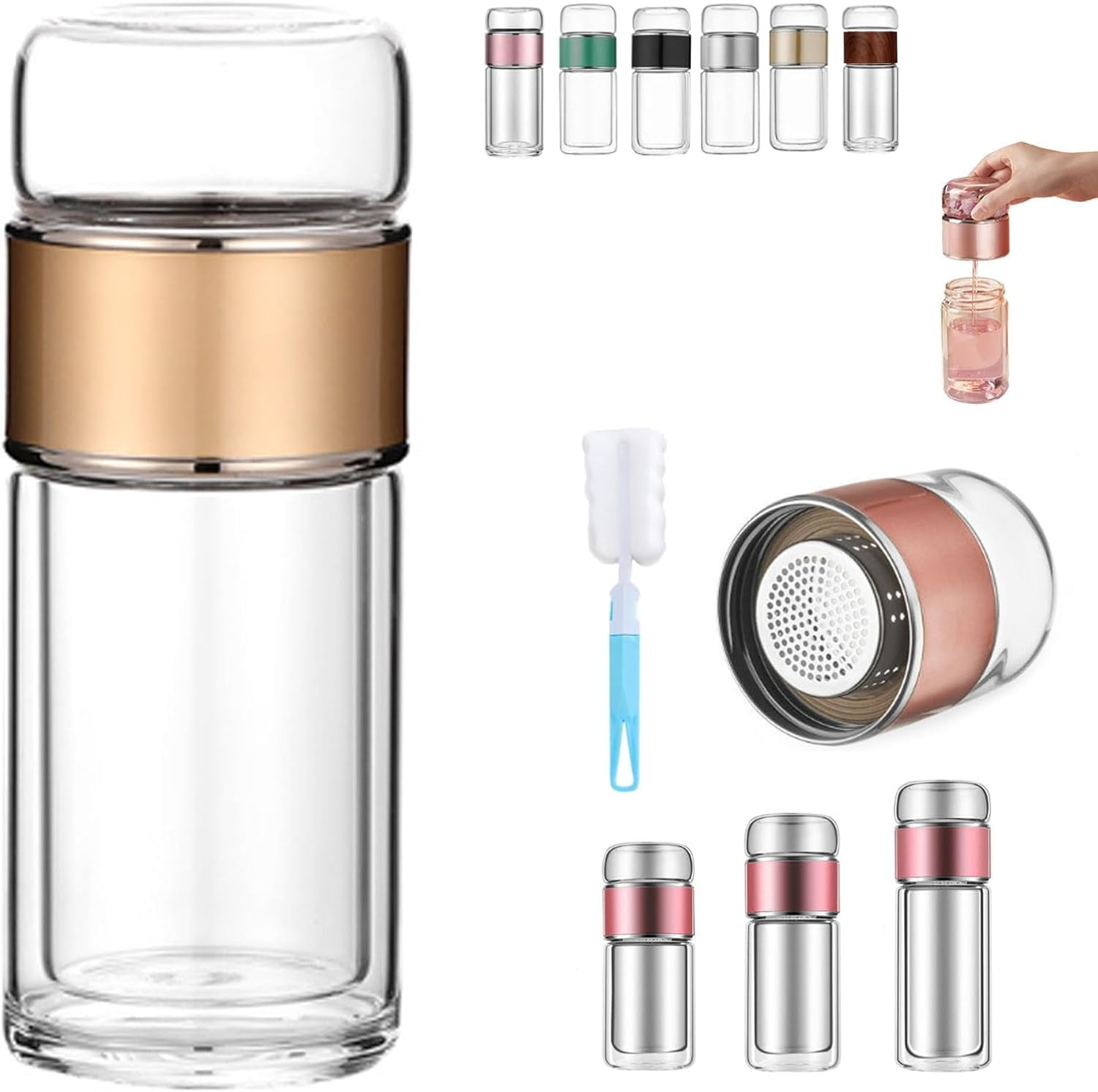 Tee-Liebhaber aufgepasst! Dieser geniale 3-in-1 Tee-Infuser macht das Brühen von losem Tee zum Kinderspiel. Einfach Tee in den Filter, Wasser dazu, Deckel schließen, umdrehen und ziehen lassen - schon hast du perfekten Tee! Das doppelschichtige Edelstahl-Filtersystem hält alle Teeblätter sicher zurück. Und wenn du mal keinen Tee trinken willst: Filter rausnehmen und schon hast du eine stylische Glas-Wasserflasche! Perfekt fürs Büro, unterwegs oder daheim. Temperaturbeständig von -20° bis 100°C - also auch für kalte Getränke oder heißen Tee ideal. Wird übrigens in nem premium Geschenkkarton geliefert - super als Präsent!