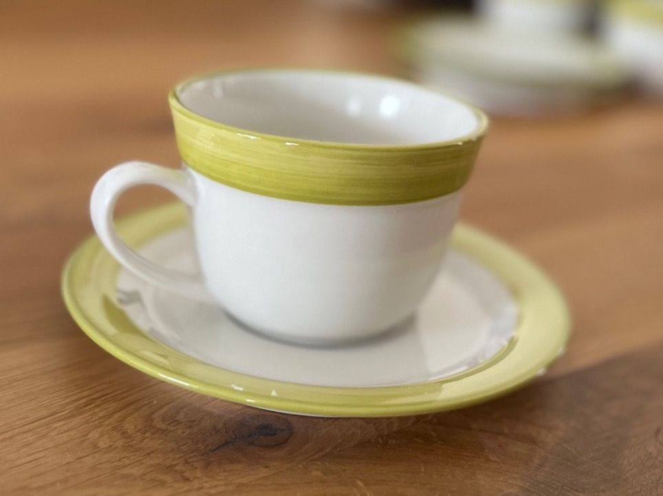 Oh wie süß! Dieses balvi Kaffeetassen-Set in Tulpenform bringt Frühlingsstimmung auf deinen Frühstückstisch. Das Set besteht aus 2 tulpenförmigen Kaffeetassen (je 100 ml) und 2 passenden Tellern in Blattform - alles aus hochwertiger Keramik handbemalt in den frischen Farben Orange und Grün. Perfekt für einen Espresso oder Cortado am Morgen, oder einfach nur um deinem Kaffee-Ritual einen besonderen Touch zu verleihen. Jedes Stück ist ein Unikat - made with love! Und praktisch obendrein: Mikrowellen- und spülmaschinenfest. Ob für dich selbst oder als Geschenk für Kaffee- oder Pflanzen-Liebhaber - dieses bezaubernde Set sorgt garantiert für strahlende Augen. Einfach unwiderstehlich!