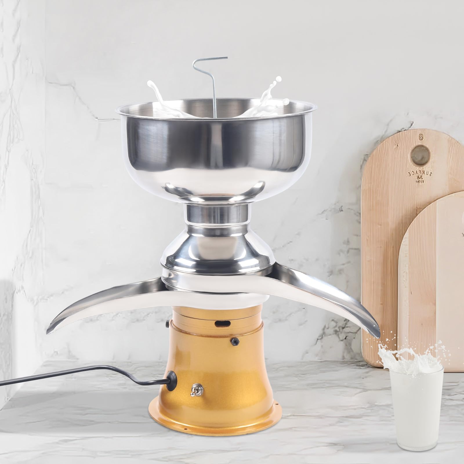 Selbst gemachte Sahne und Magermilch - wie von Zauberhand! Diese elektrische Milchzentrifuge von TuliperMood macht's möglich. Mit stolzen 50 Litern pro Stunde und einer Drehzahl von 9800-11000 U/min trennt sie Milch perfekt in Sahne und Magermilch. Der 30W Kupfermotor arbeitet superleise und kann bis zu 4 Stunden am Stück laufen. Einfach die frische Milch in den 1,1 Gallonen großen Tank füllen, einschalten und zuschauen, wie das Gerät seine Arbeit verrichtet! Du kannst sogar die Konsistenz der Sahne einstellen - von dünnflüssig bis cremig. Perfekt für kleine Bauernhöfe, Selbstversorger oder einfach für alle, die frische Sahne lieben. Aus robustem Edelstahl gefertigt, ist die Zentrifuge nicht nur langlebig, sondern auch super einfach zu reinigen. Ob für Kuh-, Ziegen- oder Schafsmilch - hier bekommst du professionelle Ergebnisse für zu Hause!