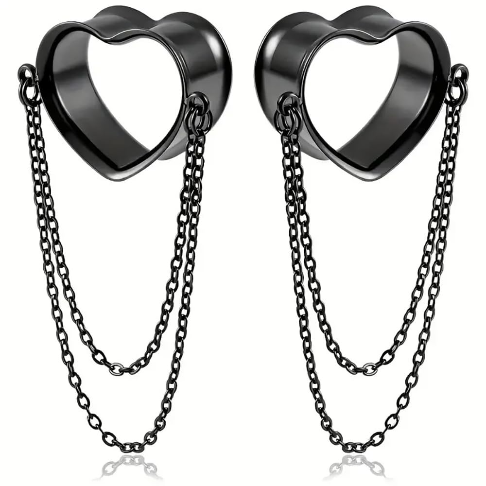Vankula Ohr Tunnel Mit Anhänger - Doppelt Konische Stecker Mit Herz-Kette In 8-25mm Für Gedehnte Ohrlöcher
