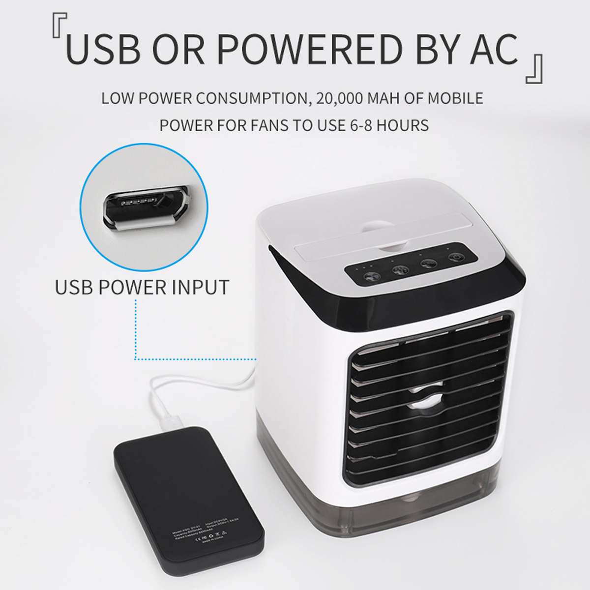 Super leise mit nur 36 dB - perfekt fürs Schlafzimmer oder Büro. Der 600 ml Wassertank mit Eiswürfelfach sorgt für erfrischende Kälte und befeuchtet die Luft. Mit 7-farbiger LED-Beleuchtung für coole Stimmung. USB-betrieben mit 1500 mAh Akku - also voll mobil! Nur 38,3 cm hoch, passt auf jeden Schreibtisch. Inklusive Fernbedienung für bequeme Steuerung. Einfach einschalten und die Sommerhitze vergessen - ob im Homeoffice, Wohnzimmer oder Schlafzimmer!