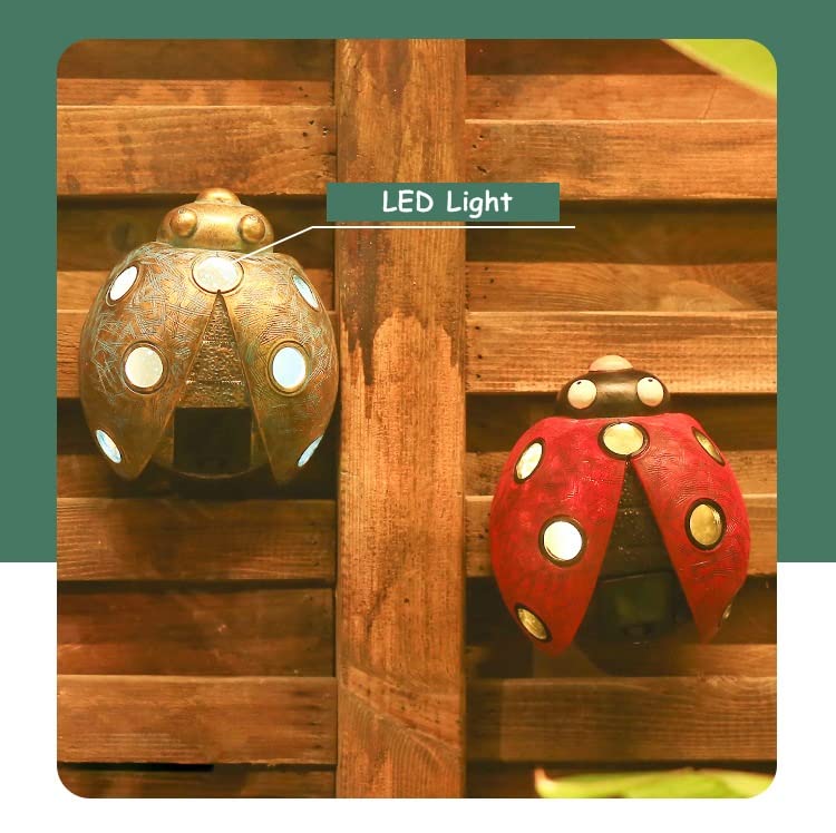 Tuzsocr Solar Marienkäfer Deko 2er Set - LED Gartenfiguren Metall