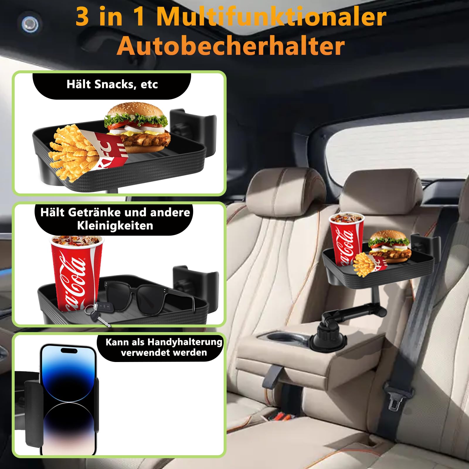 Twilight Garage 3-in-1 Auto Getränkehalter - Verstellbares Snack-Tablett Mit Handyhalterung