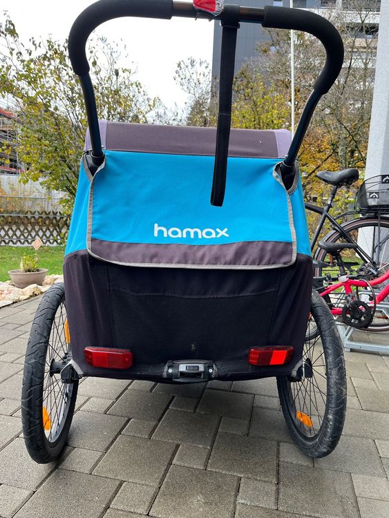 Der Alleskönner für aktive Familien! Der HAMAX Cocoon Twin verwandelt sich im Handumdrehen vom Fahrradanhänger zum Kinderwagen oder Jogger.\\n\\nTechnische Daten:\\n• Maße: 115x79x96cm\\n• Gefaltet: 98x66x32cm\\n• 2 individually verstellbare Sitze\\n• 5-Punkt-Sicherheitsgurte\\n• Integrierte Regenhülle\\n\\nFeatures:\\n• Lenkerbremse für sicheres Bremsen\\n• Abnehmbare Taschen für Einkäufe\\n• Verstellbare Federung\\n• Höhenverstellbarer Lenker\\n• Qualitätsreifen mit Hamax-Design\\n\\nZertifiziert nach EN15918/EN1888. Perfekt für Stadt, Park und Sportwege. Mit dem praktischen Jogger-Kit wird's zum Laufbegleiter!