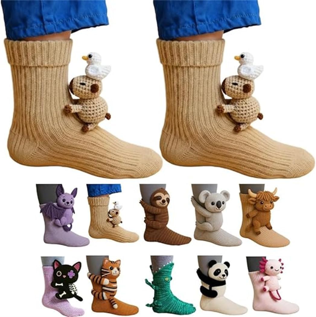 Wie süß sind denn diese 3D-Tiersocken? Das Set beinhaltet verschiedene lustige Motive wie Highland Cow, Crocodile und Faultier - perfekt für alle Tierfans! Aus weicher Baumwolle gefertigt, sind diese Socken super bequem und atmungsaktiv. Die doppelte Strickung wärmt deine Füße, ohne dabei klobig zu wirken. Jedes Paar wird handgefertigt für beste Qualität und Langlebigkeit. Perfekt als Weihnachtsgeschenk oder einfach für gemütliche Tage zu Hause. Die natürliche Baumwolle hält dich warm und leitet Feuchtigkeit ab, sodass du nicht überhitzt. Einheitsgröße passt sowohl Kindern als auch Frauen. Mit nur 50g pro Paar sind sie angenehm leicht. Bring etwas Spaß in deine Schublade mit diesen niedlichen Tier-Socken!