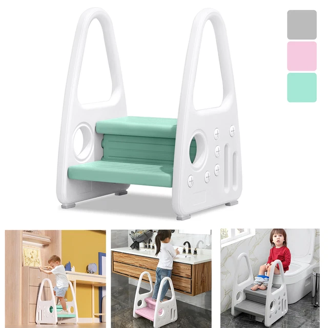 Endlich selbstständig sein! Dieser coole Tritthocker mit 2 Stufen gibt deinem Kind die Freiheit, überall hinzugelangen. Maße: 45x39,5x61cm, geeignet für Kinder von 1-8 Jahren und hält bis zu 50kg aus. Aus sicherem PP-Material ohne schädliche Stoffe. Das doppelte Armlehnen-Design gibt extra Sicherheit beim Auf- und Absteigen. Die rutschfesten Trittflächen mit Anti-Rutsch-Rillen verhindern Ausrutscher, und die Polster unten sorgen für Stabilität. Superleicht mit nur 2kg Gewicht - dein Kind kann ihn easy durch die Wohnung tragen. Perfekt für Bad, Küche, Schlafzimmer oder Kinderzimmer. Einfach mit einer Münze montieren - kein Werkzeug nötig! Fördert die Selbstständigkeit und macht deinem Kind riesigen Spaß.
