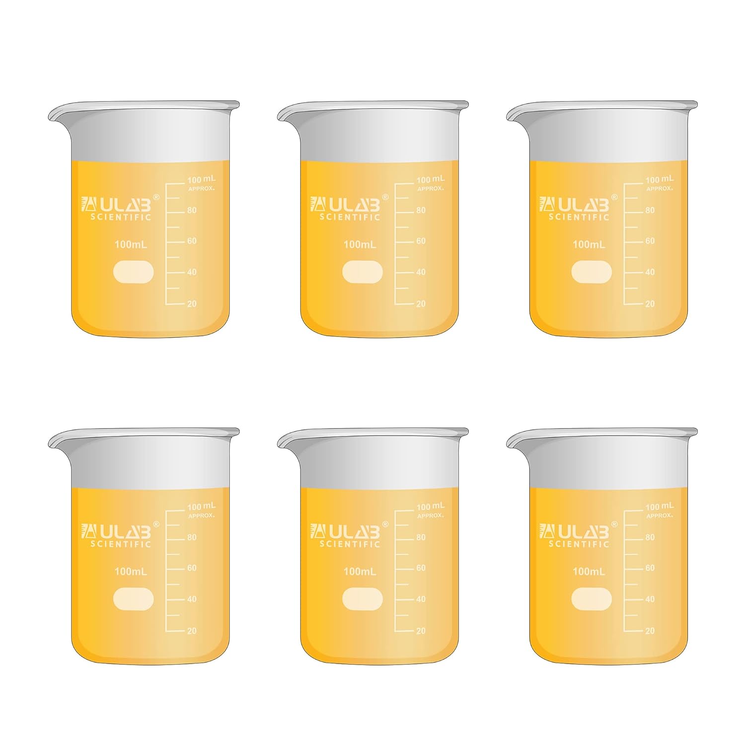 ULAB Scientific Glasbecher 300ml - 4 Stück Borosilikat Griffin Low Form Mit Graduierung