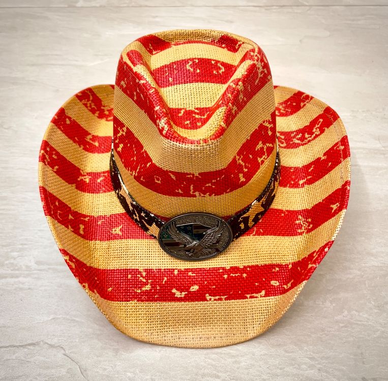 Cowboyhut Mit USA-Flagge - Western-Strohhut Für Herren & Damen
