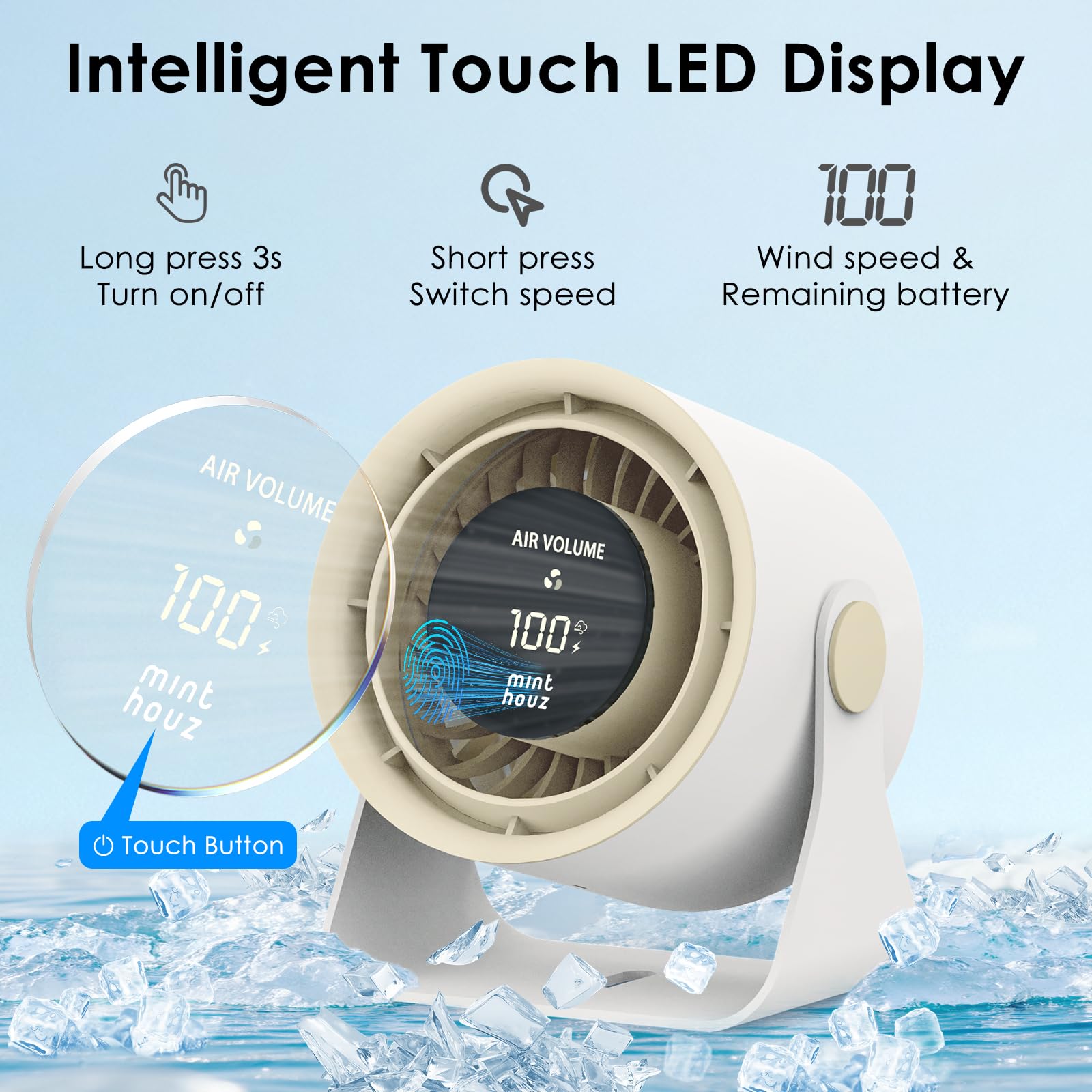 Minthouz Tischventilator USB - 3600mAh Akku Leise 6 Stufen