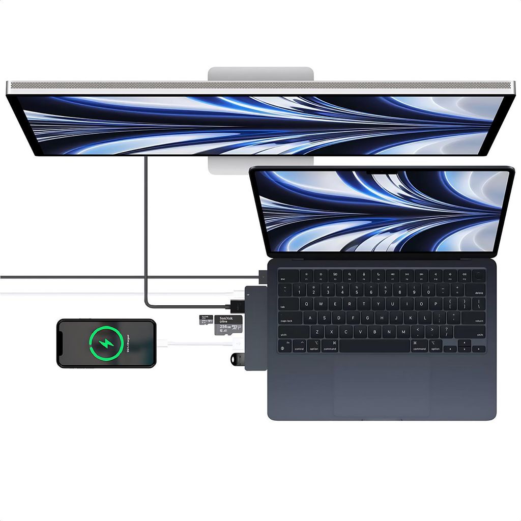 Du hast ein MacBook, aber zu wenig Anschlüsse? Dieser USB-C Hub schafft Abhilfe! Mit 8 Anschlüssen in einem kompakten Gerät hast du alles, was du brauchst. Da ist ein 4K HDMI-Anschluss für deinen Monitor oder Fernseher, ein Thunderbolt-3-Port für superschnelle 5K Bildschirme oder Datenübertragung, zwei USB-3.0-Ports, ein USB-C-Port, ein USB-2.0-Anschluss und sogar SD und MicroSD Kartenleser. Kompatibel ist der Adapter mit MacBook Pro 13-16 Zoll (2016-2024) und MacBook Air (2018-2025). Der Thunderbolt-Port unterstützt übrigens auch Power Delivery mit bis zu 100W - du kannst also dein MacBook aufladen, während du den Hub benutzt! Daten überträgst du mit bis zu 40 Gbit/s, das ist richtig flott. Fotos von deiner Kamera oder deinem Smartphone kopierst du im Nu mit den Kartenlesern. Wichtig: Wenn du eine Schutzhülle an deinem MacBook hast, passt der Hub eventuell nicht. Und bei M1 MacBooks kannst du nicht zwei externe Bildschirme gleichzeitig betreiben. Aber ansonsten - ein absolutes Must-have für alle MacBook-Nutzer, die mehr Anschlüsse brauchen! Kompakt, vielseitig und einfach praktisch.