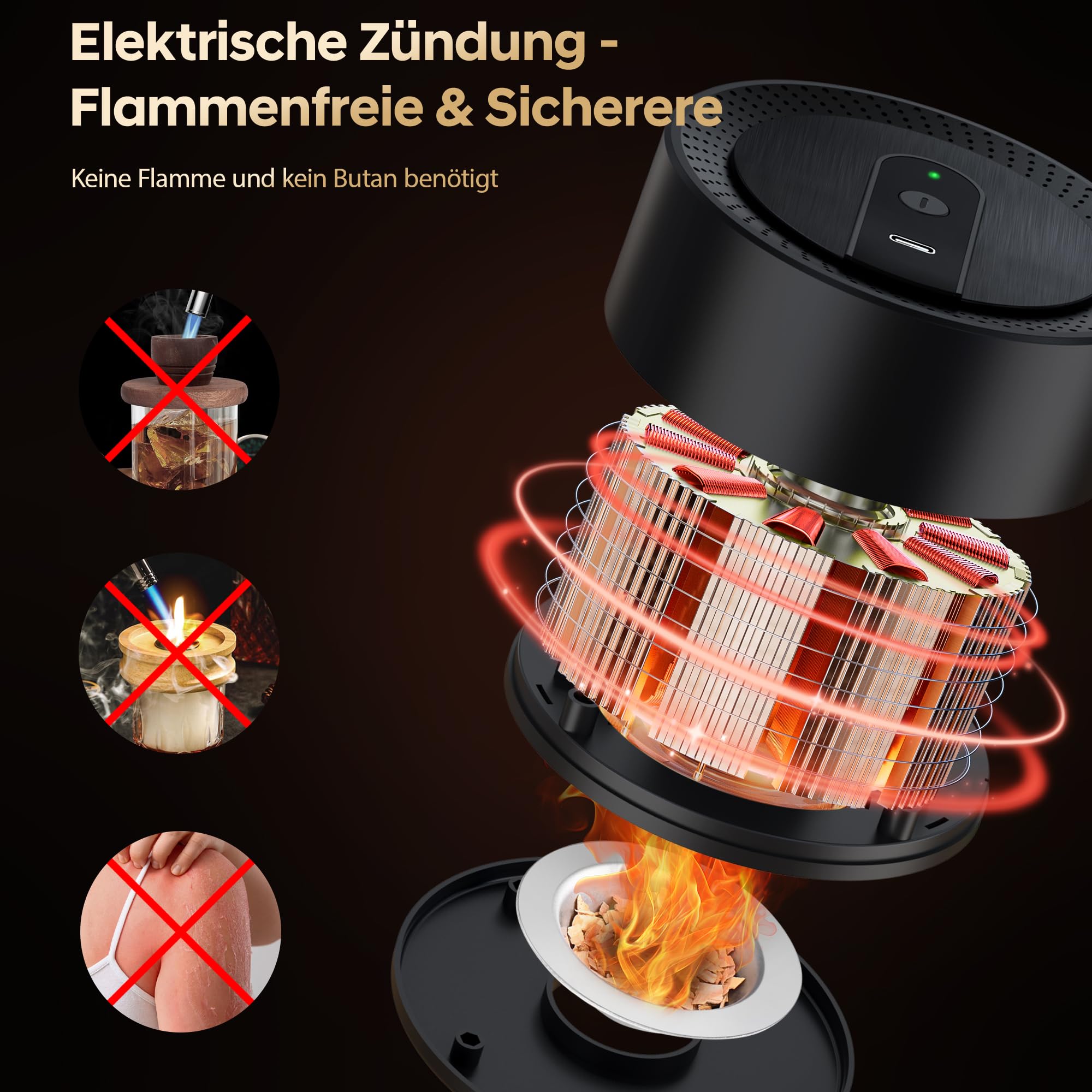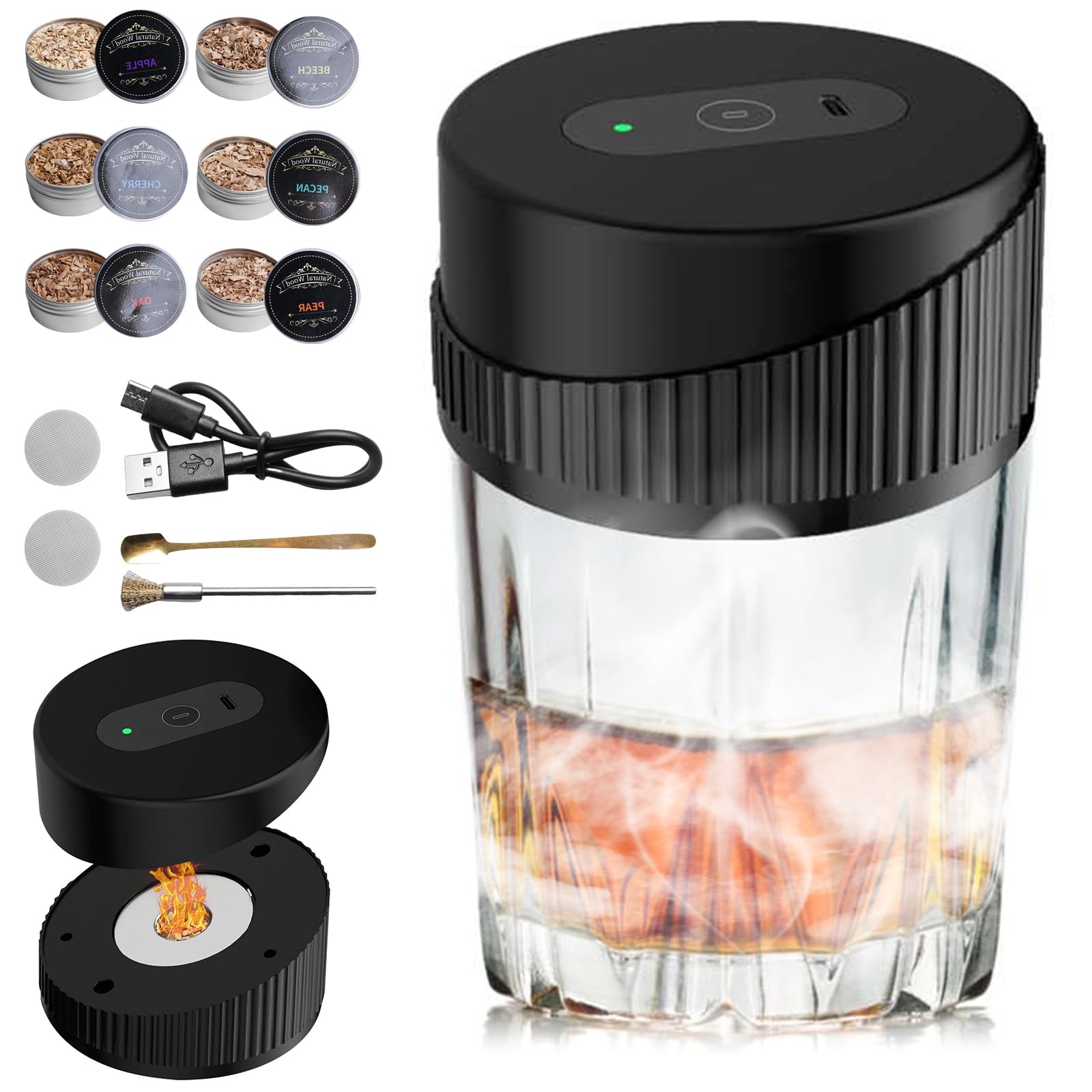 Elektrischer Cocktail Smoker Set - USB-C Whisky Smoker Mit 6 Holzchips