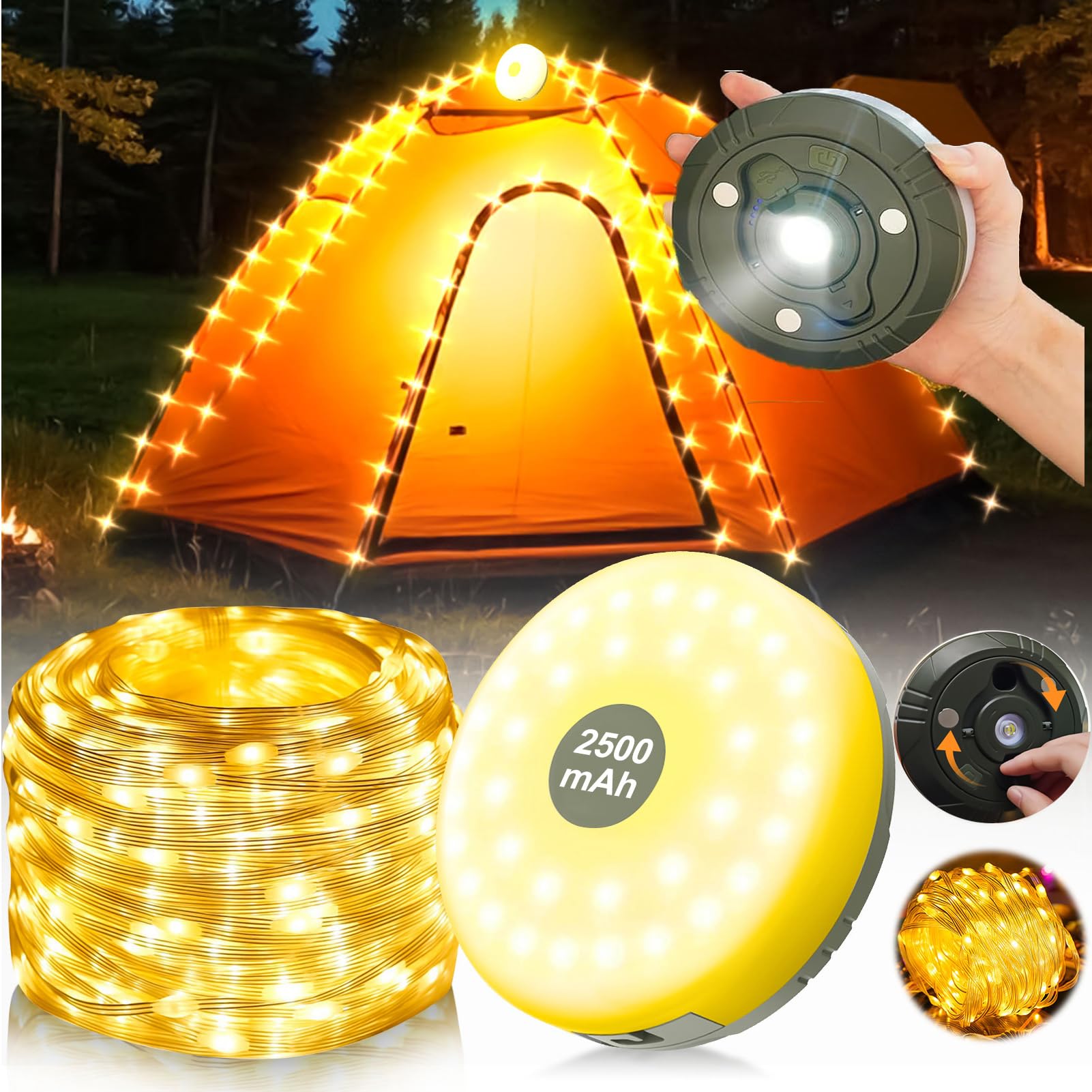 Camping Lichterkette Aufrollbar - USB Ladbar Mit 8 Modi & Powerbank