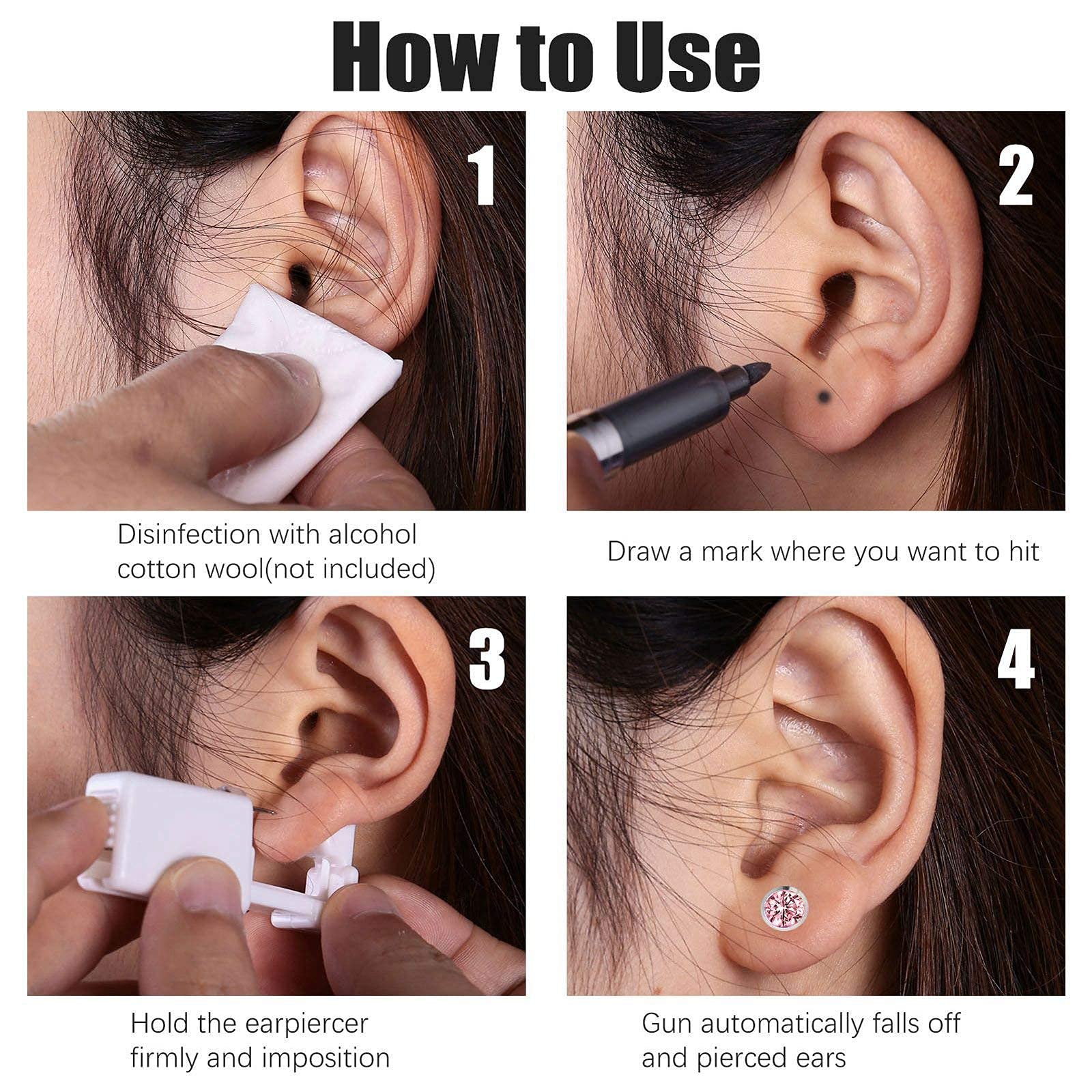 Ohrlöcher stechen war noch nie so einfach! Dieses sterile Einweg-Set mit 2 Pistolen und Diamant-Steckern aus 316L Edelstahl macht's möglich. Perfekt für zu Hause - ganz ohne Salon-Termin!