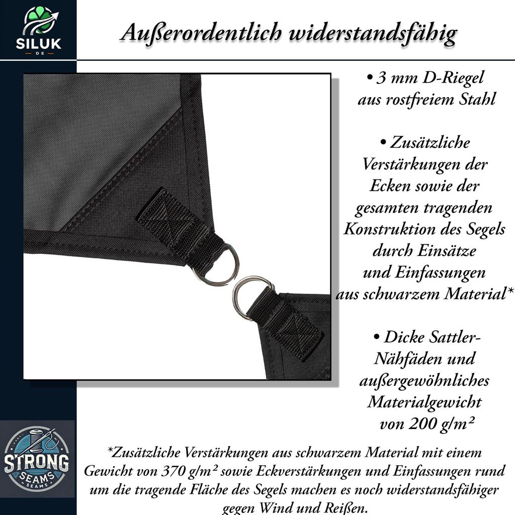 Genieße deinen Garten ohne Sonnenbrand! Dieses hochwertige Sonnensegel bietet 100% Schutz vor UV-Strahlen und ist komplett wasserdicht. Aus robustem Oxford-Material (200g/m²) mit PU-Beschichtung - extrem reißfest und langlebig. Getestet nach EU-Sicherheitsnormen, frei von Schadstoffen. Einfach mit den mitgelieferten Leinen befestigen. Bitte mit leichter Neigung montieren, damit Regenwasser ablaufen kann. Perfekt für Terrasse, Balkon oder über dem Sandkasten - schafft angenehmen Schatten an heißen Tagen!