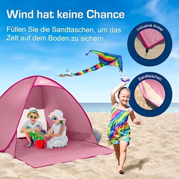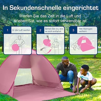 Sonnenschutz in Sekundenschnelle! Diese Strandmuschel poppt einfach auf - kein mühsames Aufbauen mehr. Mit UV-Schutz UPF 50+ blockiert sie 98% der schädlichen Strahlen.