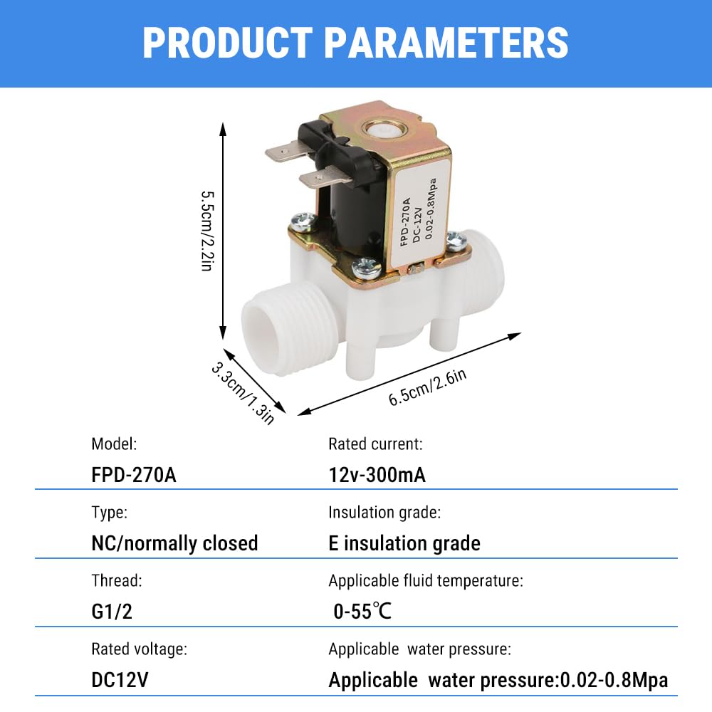 Brauchst du ein zuverlässiges Magnetventil für deine Wasserinstallation? Dieses Uadme DC 12V Magnetventil ist genau das Richtige! Mit G1/2 Gewinde und aus hochwertigem Kunststoff und Messing gefertigt, ist es richtig langlebig. Das Besondere: Es ist 'normalerweise geschlossen' (N/C), das heißt es öffnet nur bei Strom - so werden Leckagen bei Nichtgebrauch verhindert! Perfekt für 12V-Systeme mit einem Nennstrom von 300 mA. Der zulässige Wasserdruck liegt zwischen 0,02–0,8 MPa und die Medientemperatur zwischen 0–55 °C. Mit den Maßen 6,5 x 3,3 x 5,5 cm ist es kompakt und wiegt nur etwa 100 Gramm. Die Installation ist super einfach - ein unkomplizierter Ersatz für defekte Ventile. Ob für Waschmaschinen, Wasserspender oder Gartenbewässerung - dieses Ventil ist super vielseitig einsetzbar! Die Umgebungsbedingungen sollten übrigens bei maximal 2500 m über dem Meeresspiegel, 0–40 °C Umgebungstemperatur und unter 95% Luftfeuchtigkeit liegen. Einfach bestellen und von der Qualität überzeugen lassen!