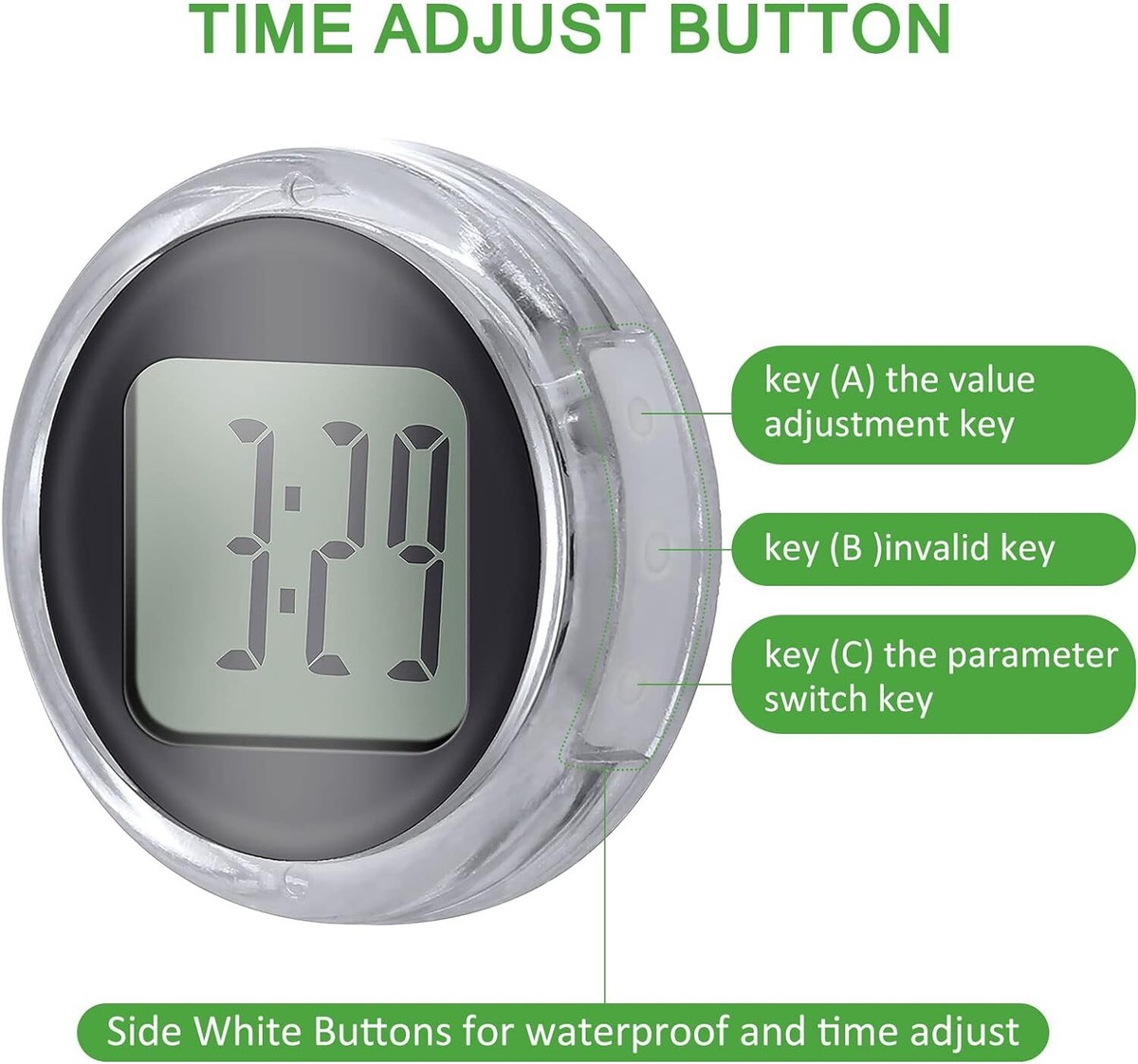 Praktisch und unauffällig - diese Mini-Digitaluhren sind die perfekte Lösung für Motorrad, Auto oder Werkstatt! Nur 2,7cm im Durchmesser, nehmen kaum Platz weg und sind trotzdem gut ablesbar. Zeigen Stunden und Minuten an - was will man mehr? Mit IP64 Wasserschutz hält sie auch mal einen Regenschauer aus. Die Batterie hält bis zu 1 Jahr - das nenne ich langlebig! Einfach mit den mitgelieferten 3M-Aufklebern befestigen - in Sekunden montiert. Wichtig: Den Seitengummi nicht beschädigen, sonst ist die Wasserdichtheit weg. Perfekt auch für Fahrräder, Büroschließfächer oder zu Hause. Im 2er-Set - eine fürs Motorrad, eine für die Werkstatt vielleicht? Super Preis für so viel praktischen Nutzen. Endlich immer die Uhrzeit im Blick, ohne dass es aufdringlich wirkt!