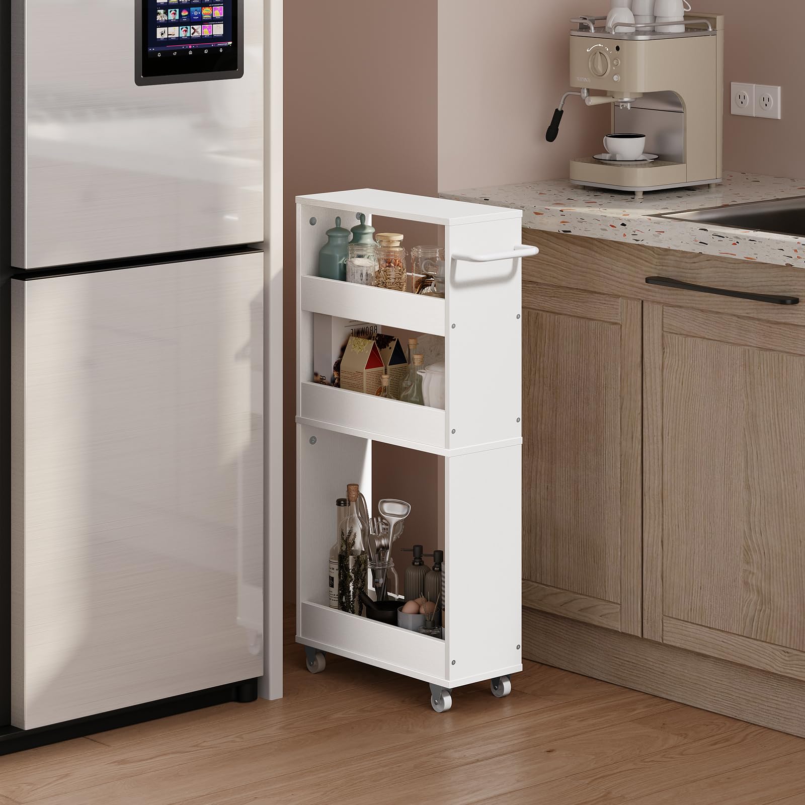 Ultra-schmaler Küchenwagen 4-stöckig Mit Rollen - Nur 15cm Tief Für Enge Räume